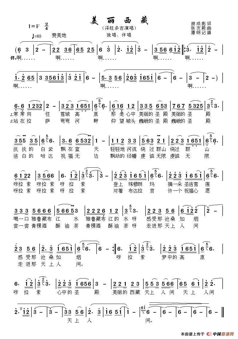 美丽西藏(胡成彪词 张友殿曲)