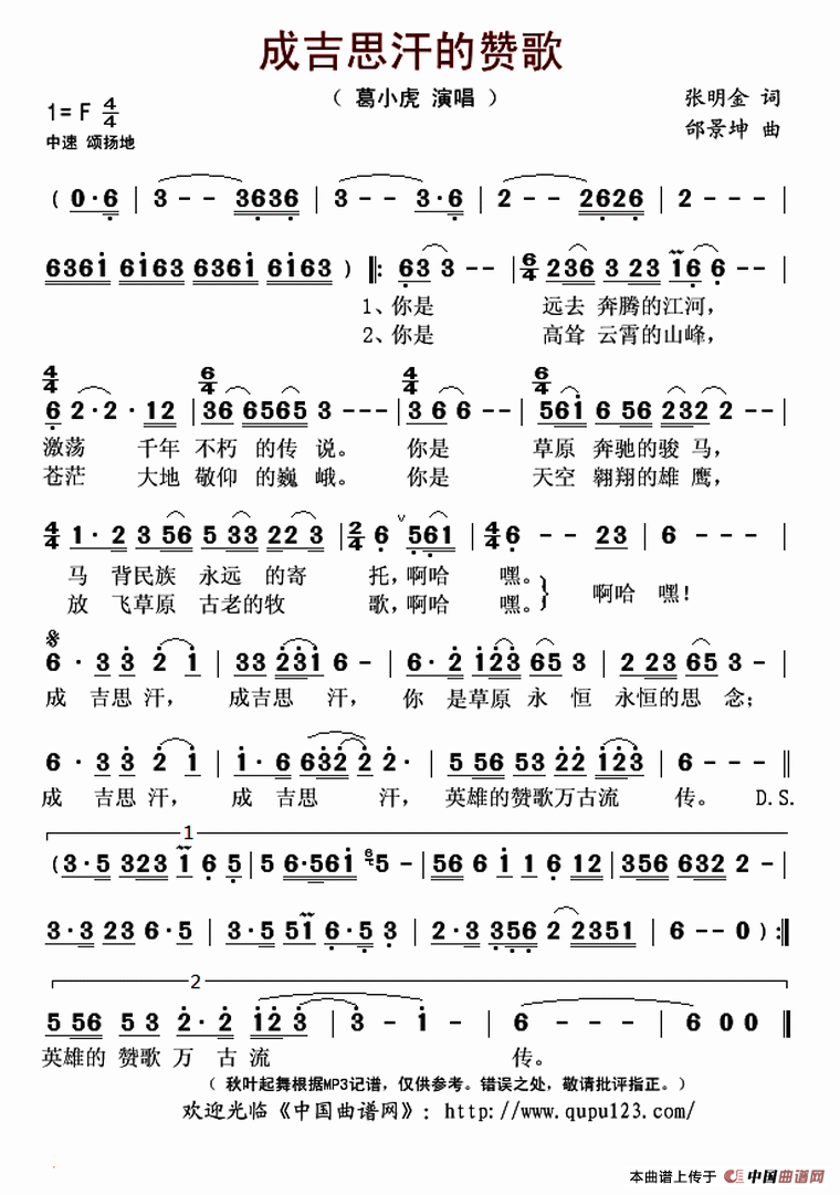 你是远去奔腾的江河,激荡千年不朽的传说。你是草原奔驰的骏马马,背民族永远的寄托 啊哈嘿。