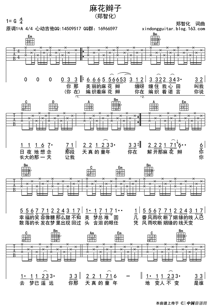 麻花辫子(吉他六线谱)(1)_原文件名:00045-麻花辫子-郑智化-吉他谱01.gif