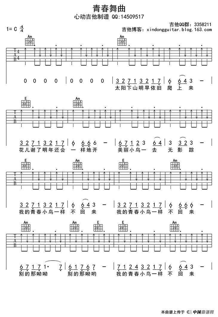 青春舞曲(吉他六线谱)