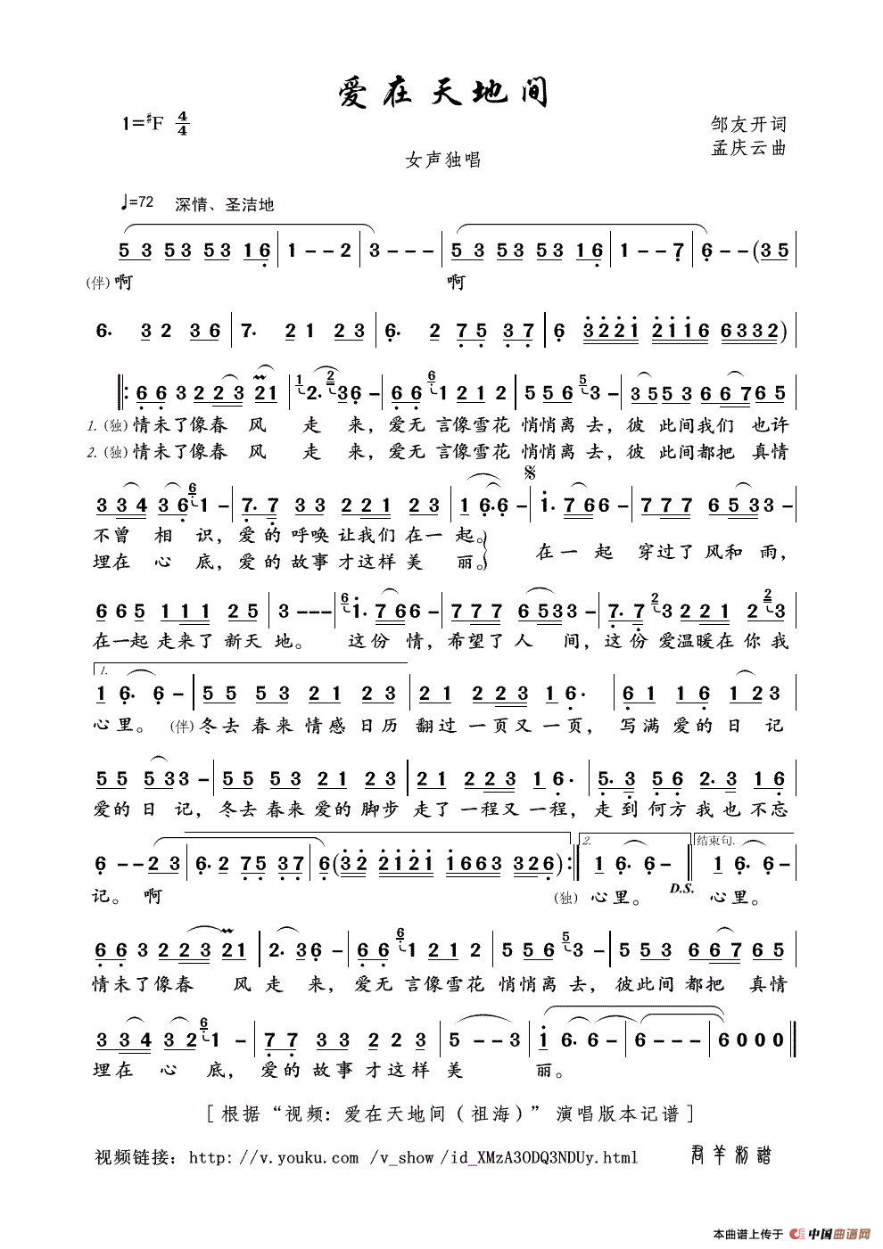 爱在天地间(邹友开词 孟庆云曲)