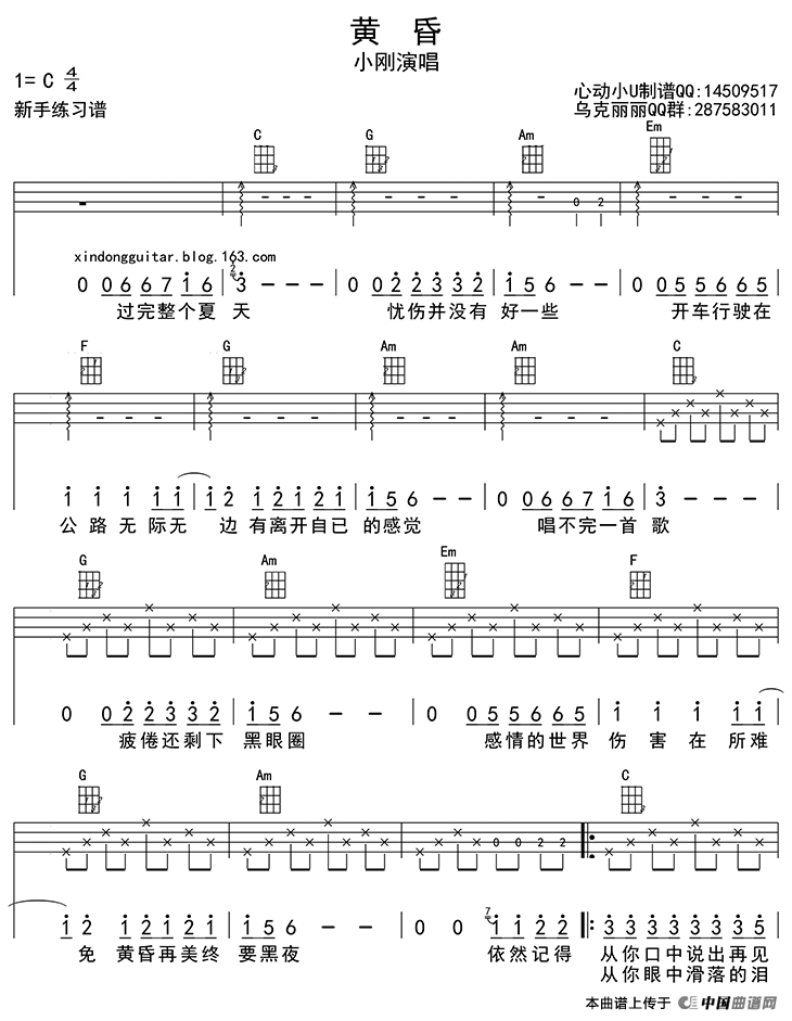 黄昏(ukulele四线谱)(1)_原文件名:周传雄-黄昏-ukulele四线谱01.gif