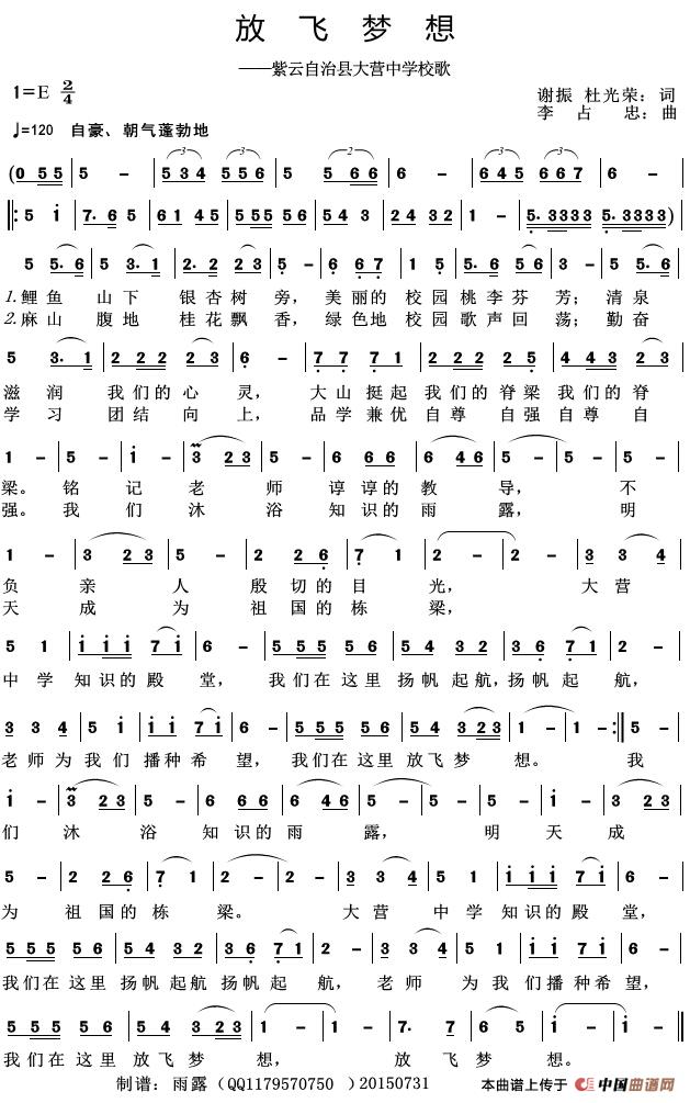放飞梦想(紫云自治县大营中学校歌)