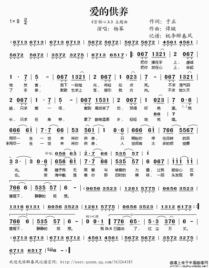 关于《爱的供养》曲谱的评论