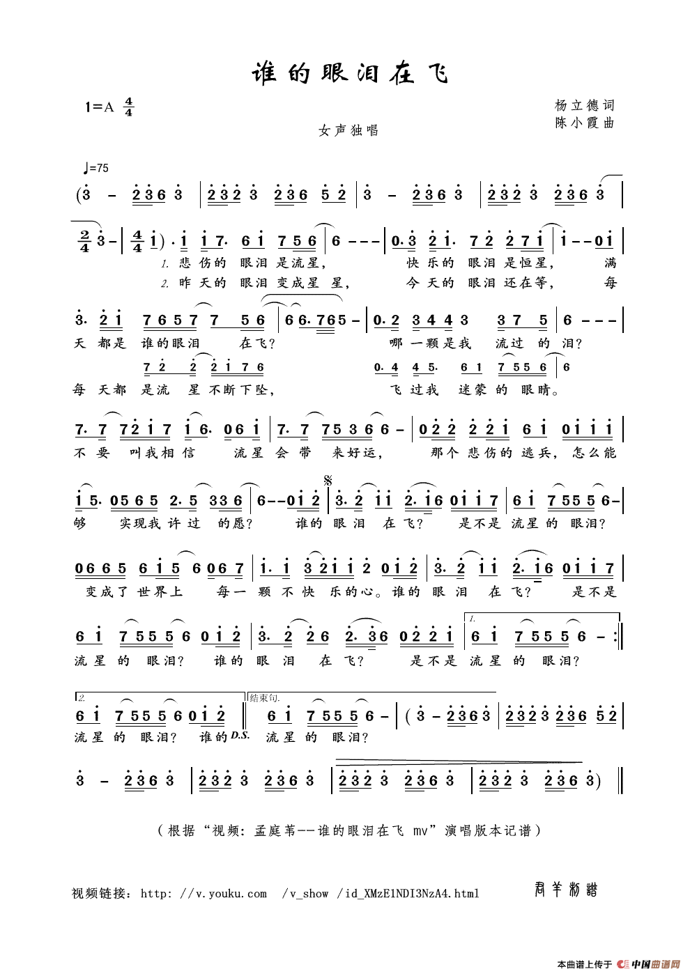 谁的眼泪在飞(杨立德词 陈小霞曲)