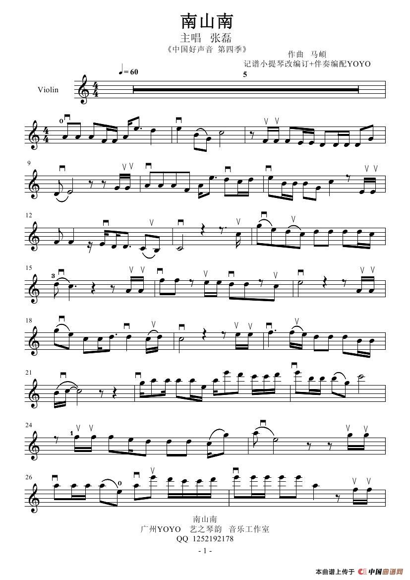 南山南(小提琴版首发)(小提琴谱)(1)_原文件名:南山南-小提琴谱-根据中国好声音改编配乐0000.jpg