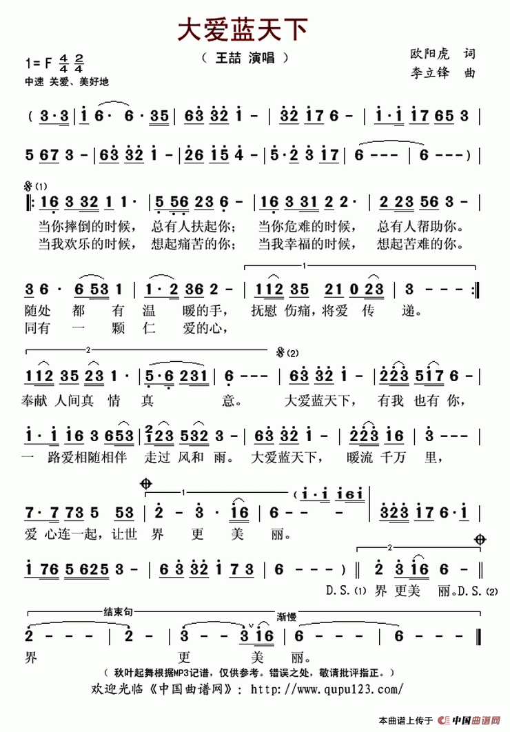 提示:在曲谱图片上单击右键,选择“图片另存为...”即可将曲谱保存到您的电脑中,打印时候可将图片插入到WORD中,调整合适大小打印即可。