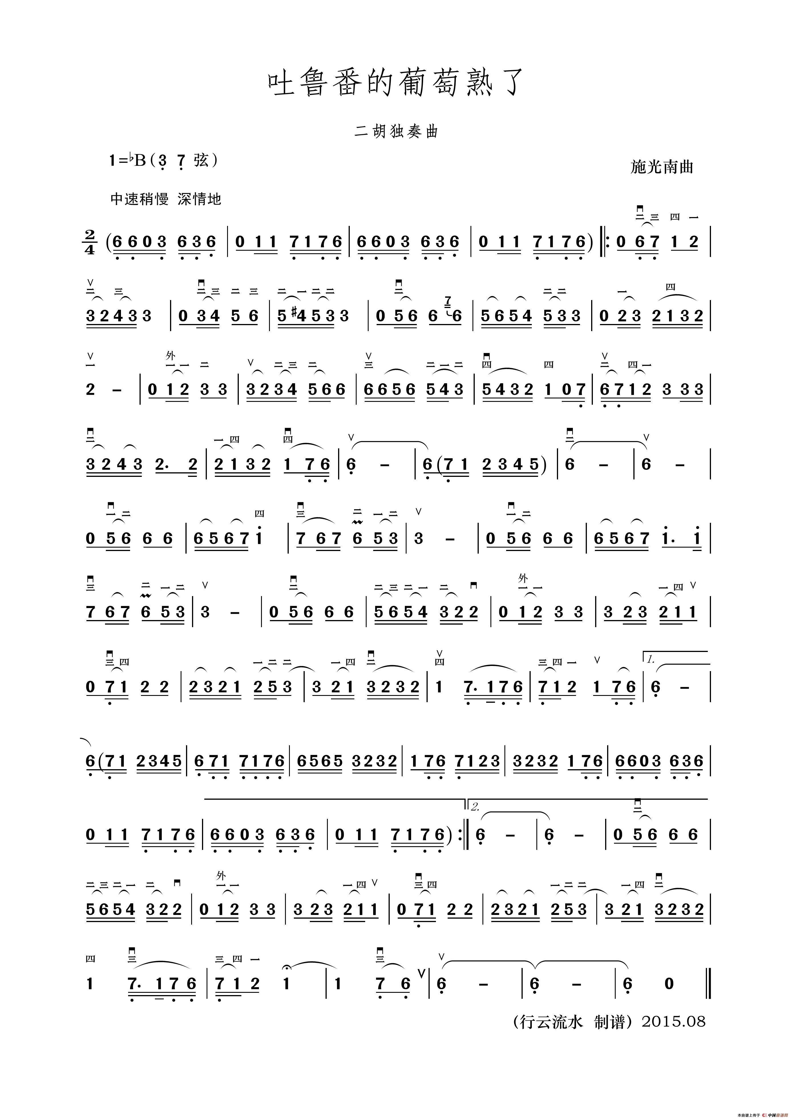 关于《吐鲁番的葡萄熟了》曲谱的评论