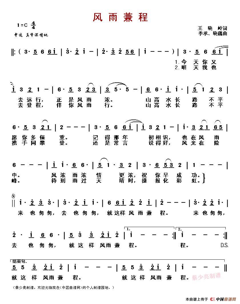 《风雨兼程》文本歌词