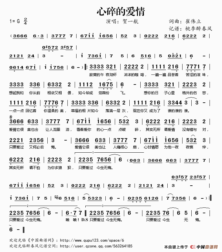 《心碎的爱情》文本歌词