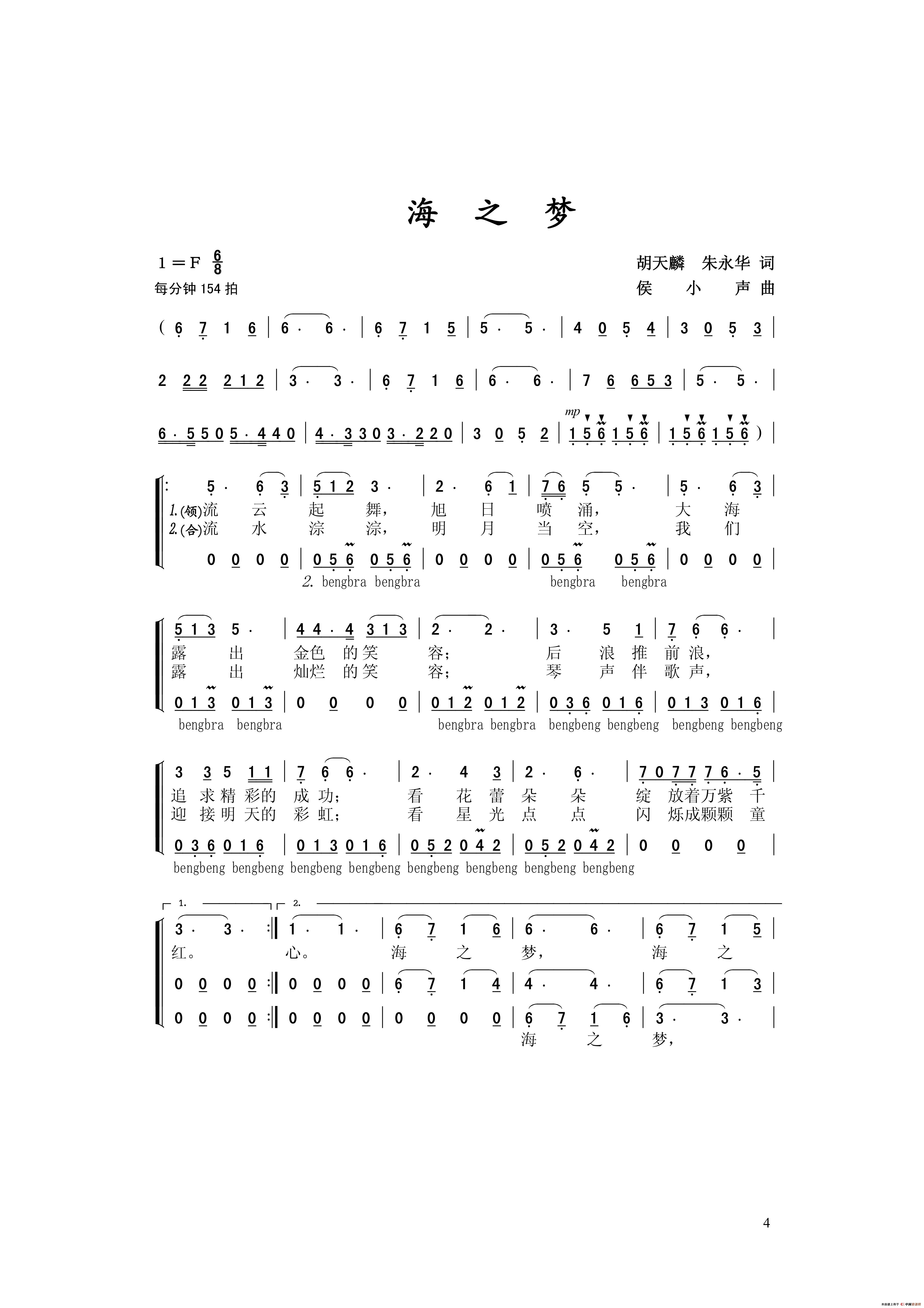 海之梦(胡天麟、朱永华词 侯小声曲)