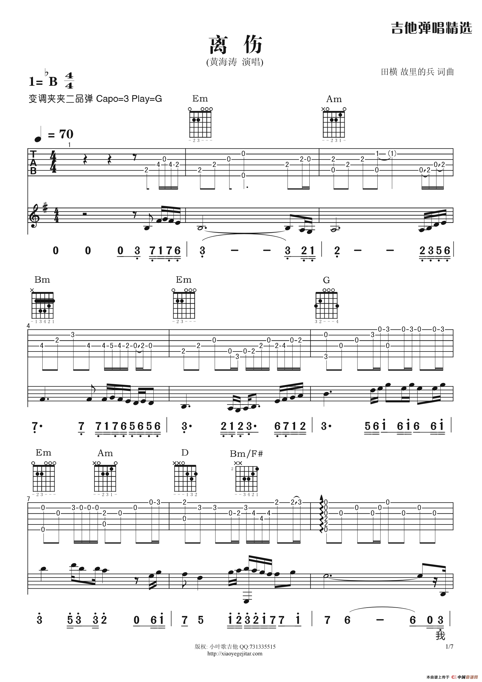 作词:田横 故里的兵 作曲:田横 故里的兵 演唱(奏):黄海涛 来源:小叶歌吉他扒谱制谱 上传:小叶歌吉他