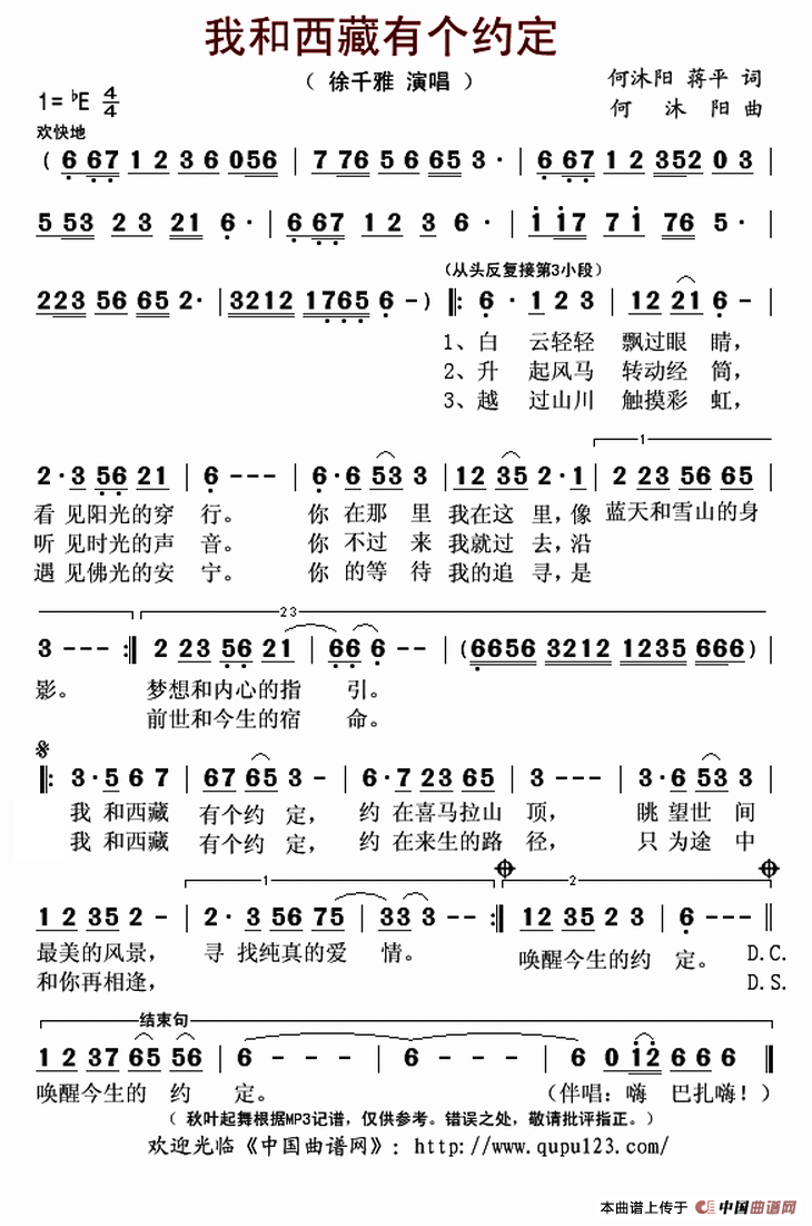 关于《我和西藏有个约定》曲谱的评论