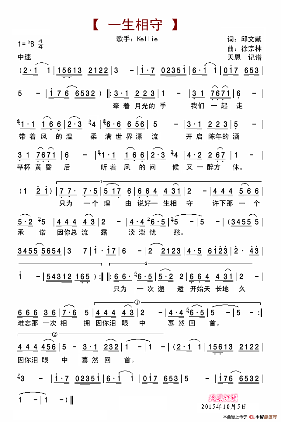 歌名:一生相守