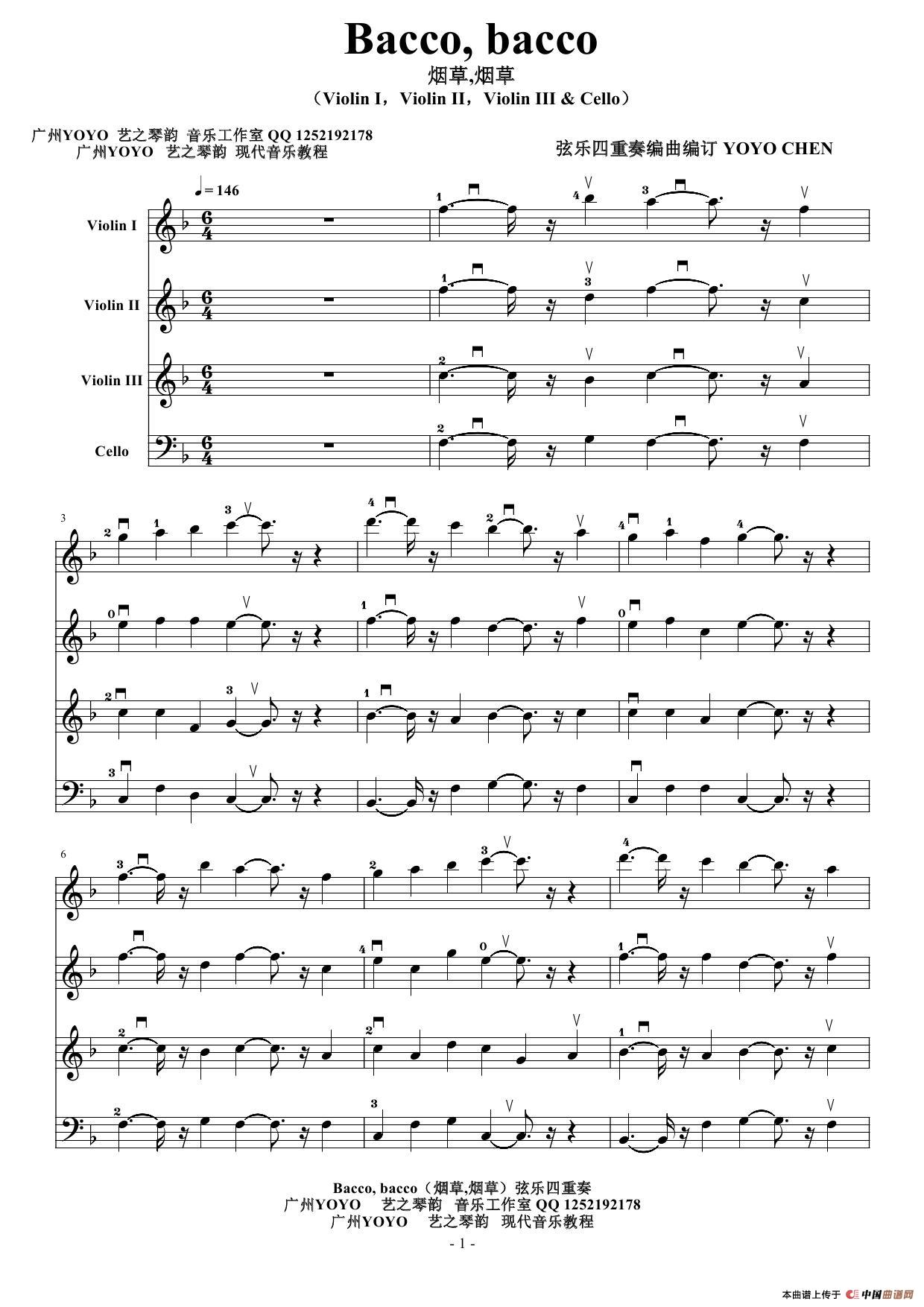 Bacco bacco(小提琴大提琴弦乐四重奏)
