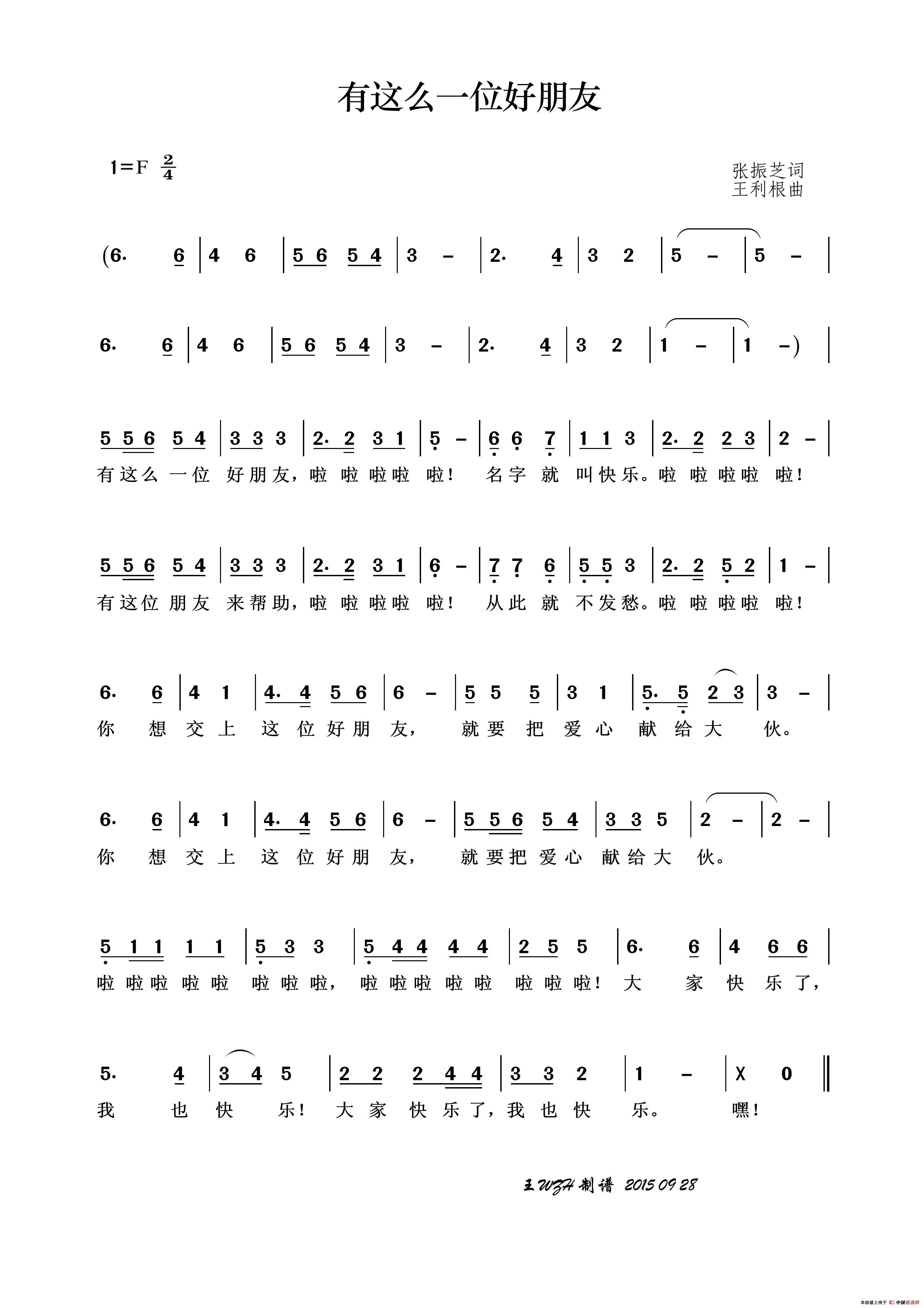 关于《有这么一位好朋友》曲谱的评论