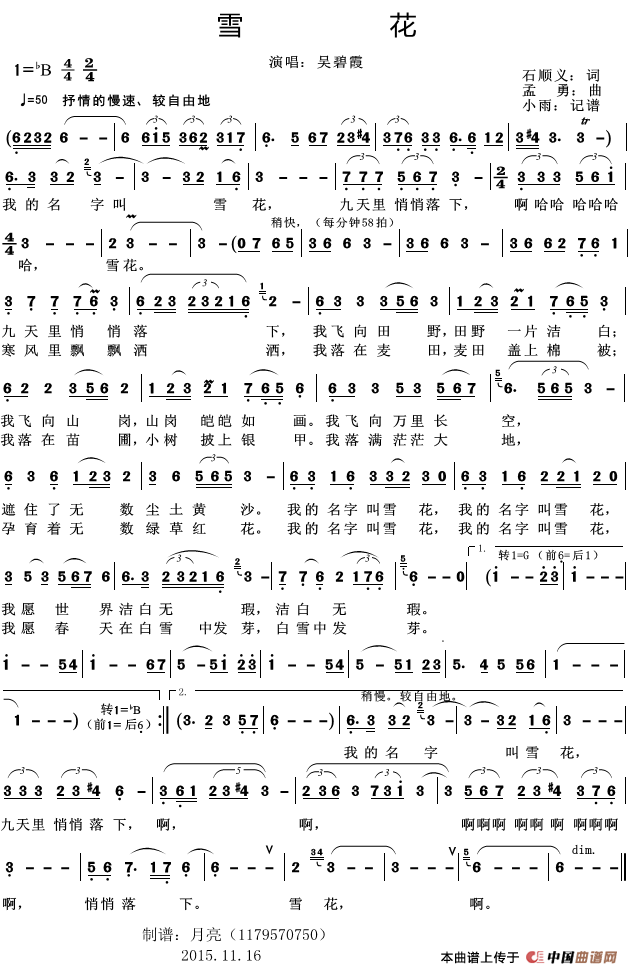 雪花(石顺义词 孟勇曲)