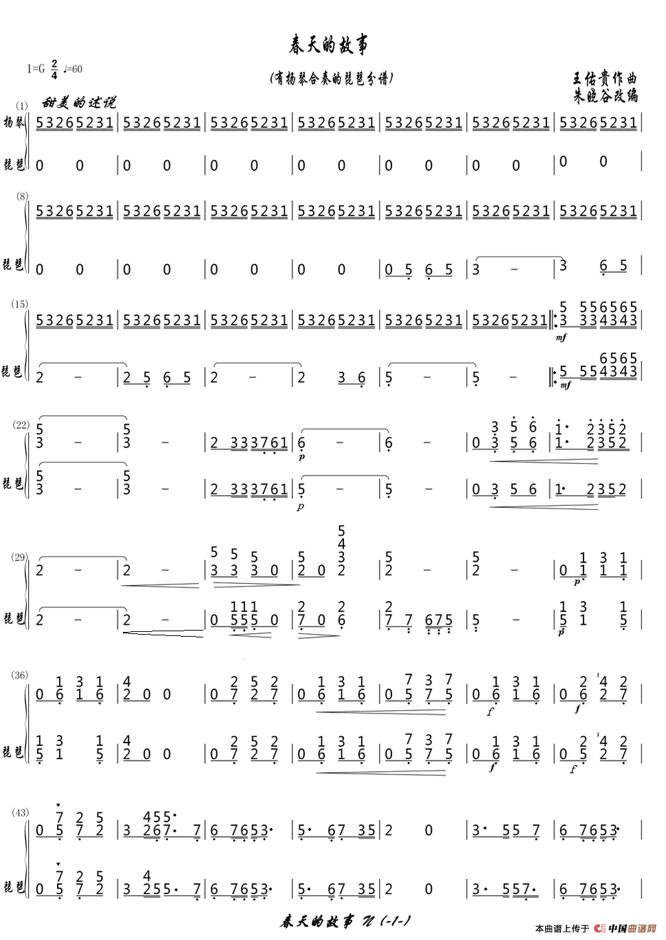 春天的故事(有扬琴合奏的琵琶分谱))
