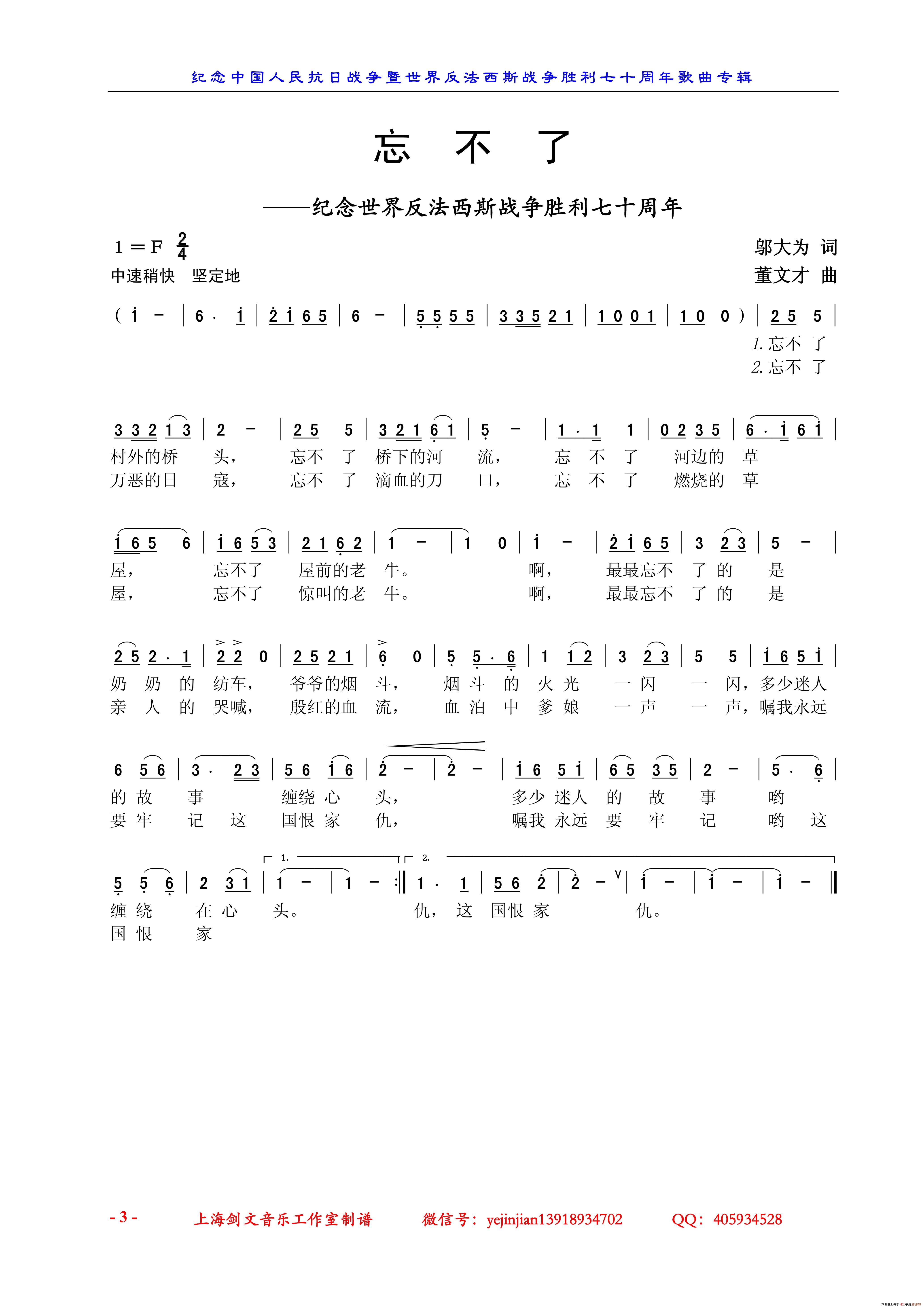 忘不了(纪念世界反法西斯战争胜利七十周年)(1)_原文件名:201510《海上风特刊》歌曲集全本0003.jpg