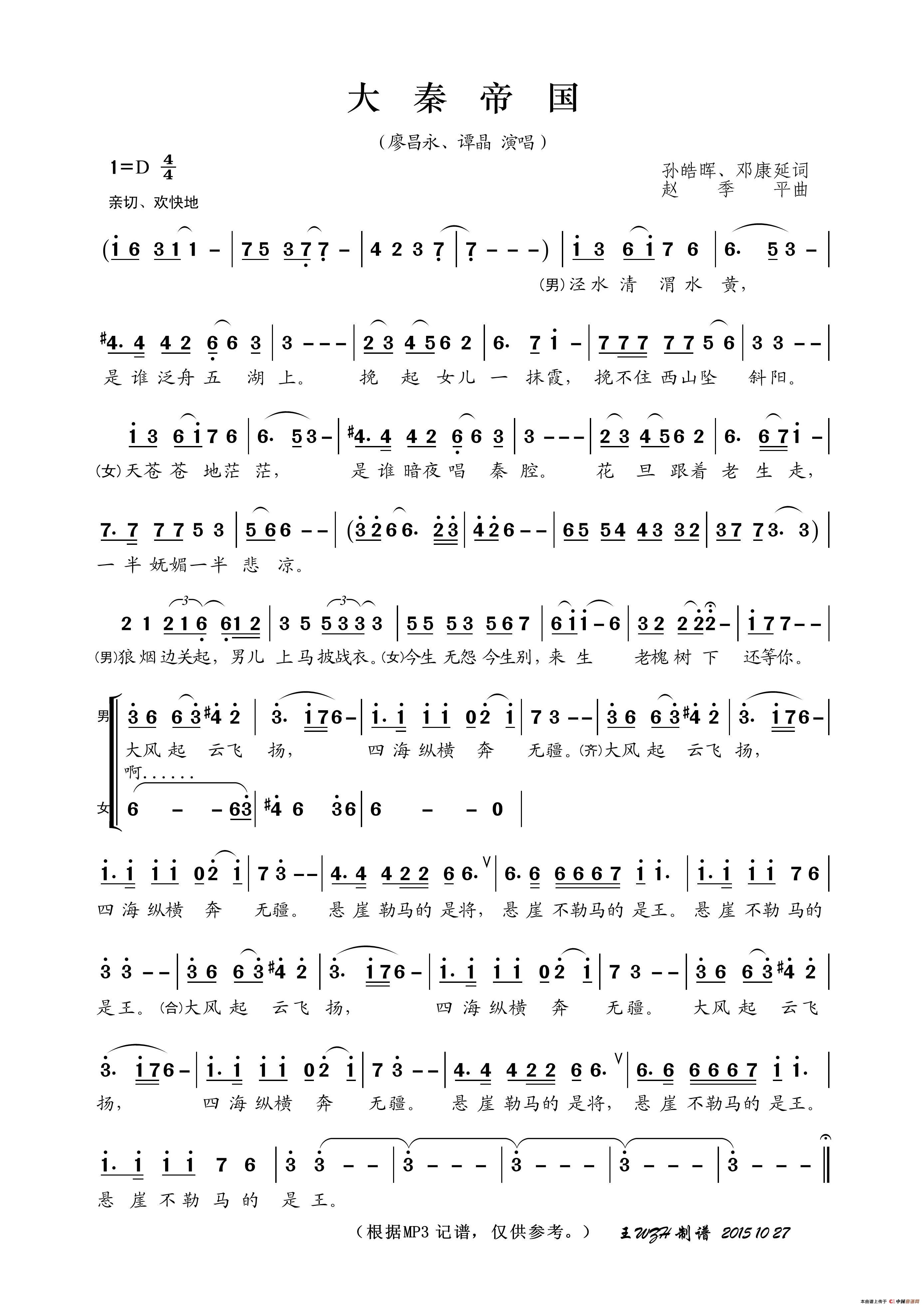 关于《大秦帝国》曲谱的评论