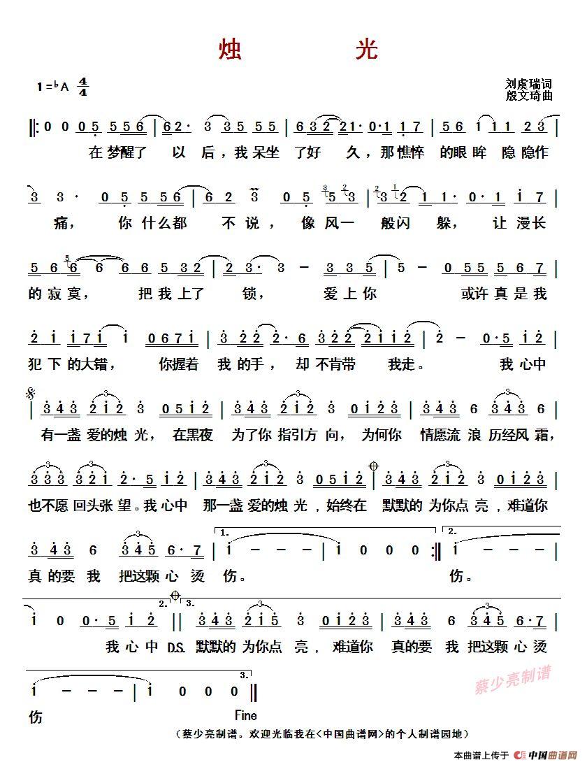 《烛光(刘虞瑞词/殷文琦曲)》文本歌词