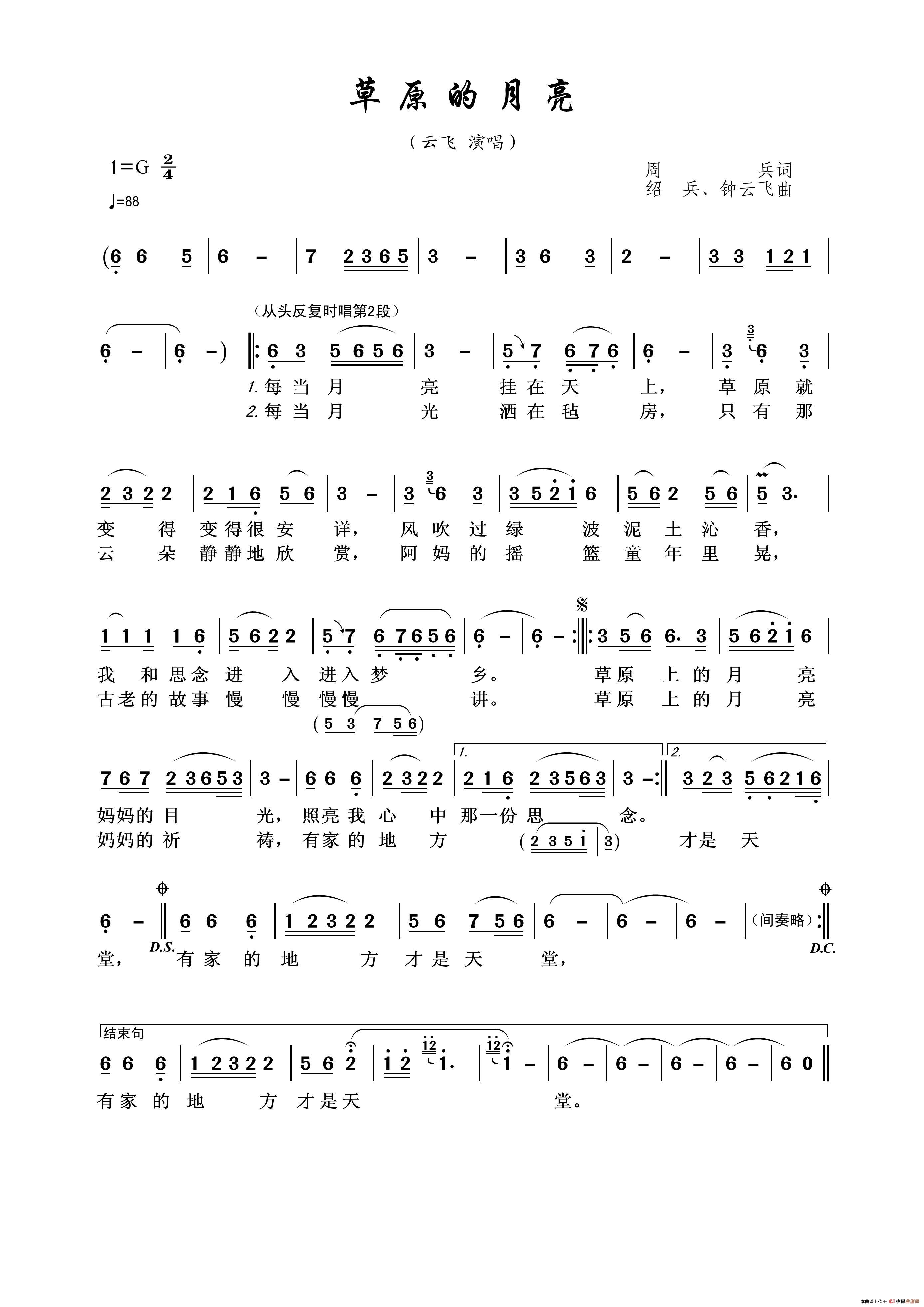 关于《草原的月亮》曲谱的评论