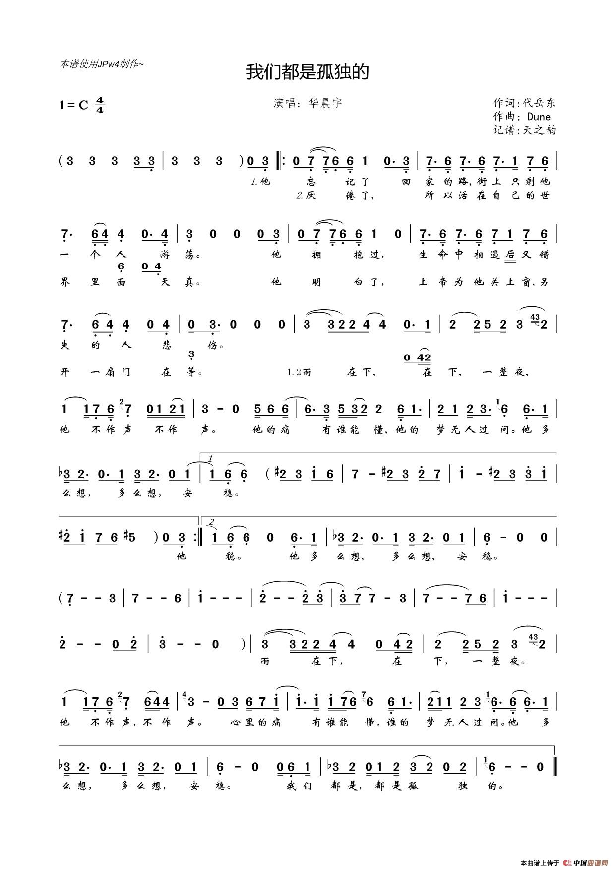 作词:代岳东   作曲:Dune   演唱(奏):华晨宇   来源:天之韵记谱   上传:天之韵   日期:2016-01-05   浏览次数: