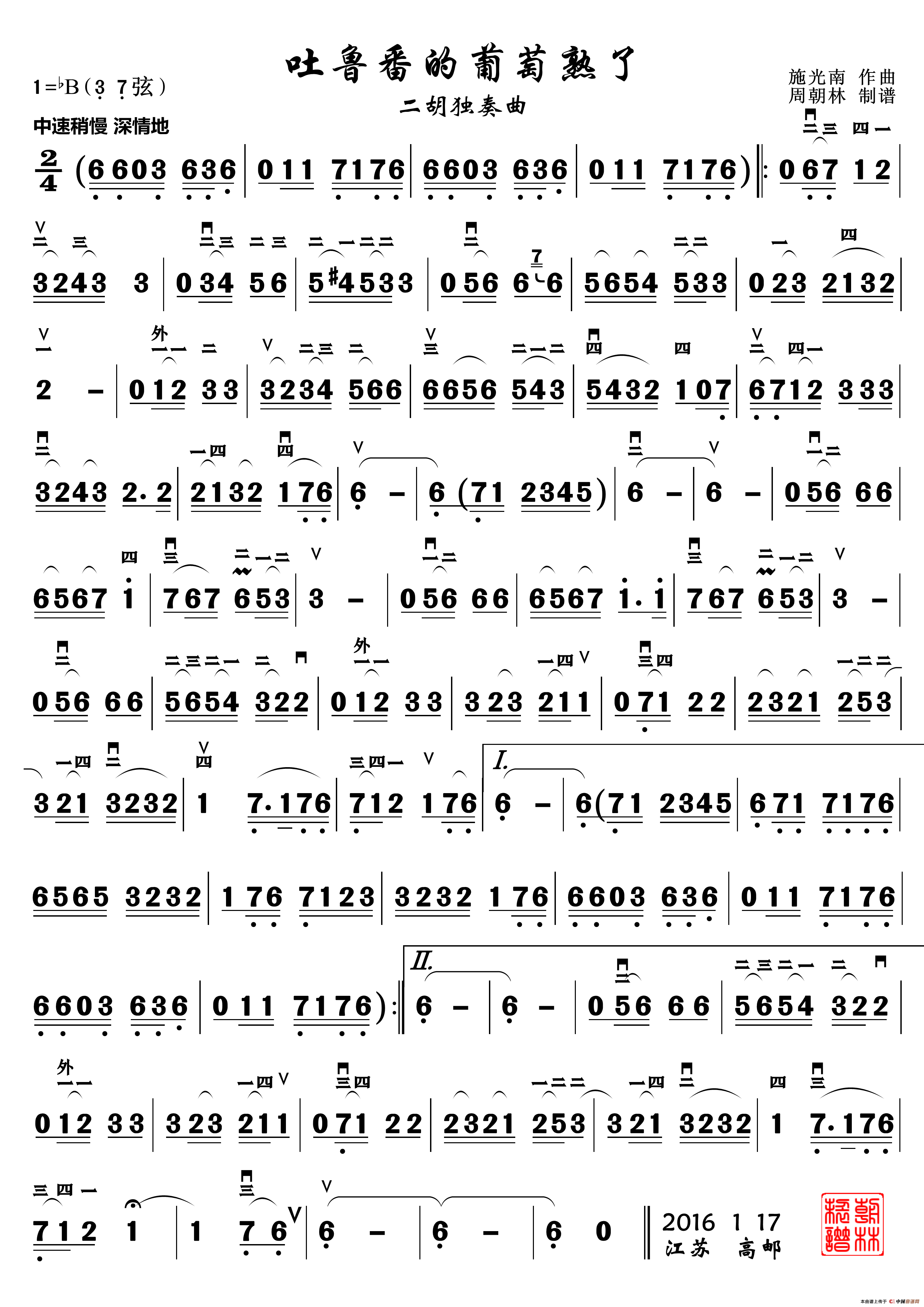 吐鲁番的葡萄熟了(二胡独奏曲)