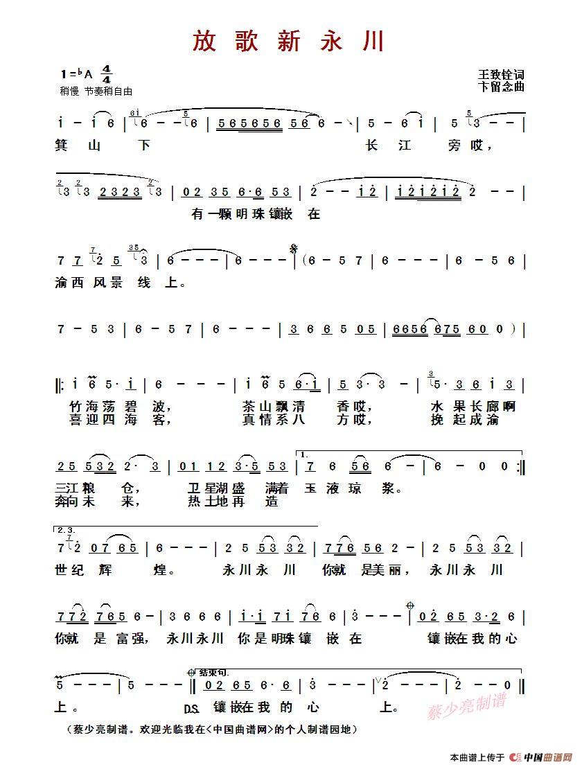 《放歌新永川》文本歌词