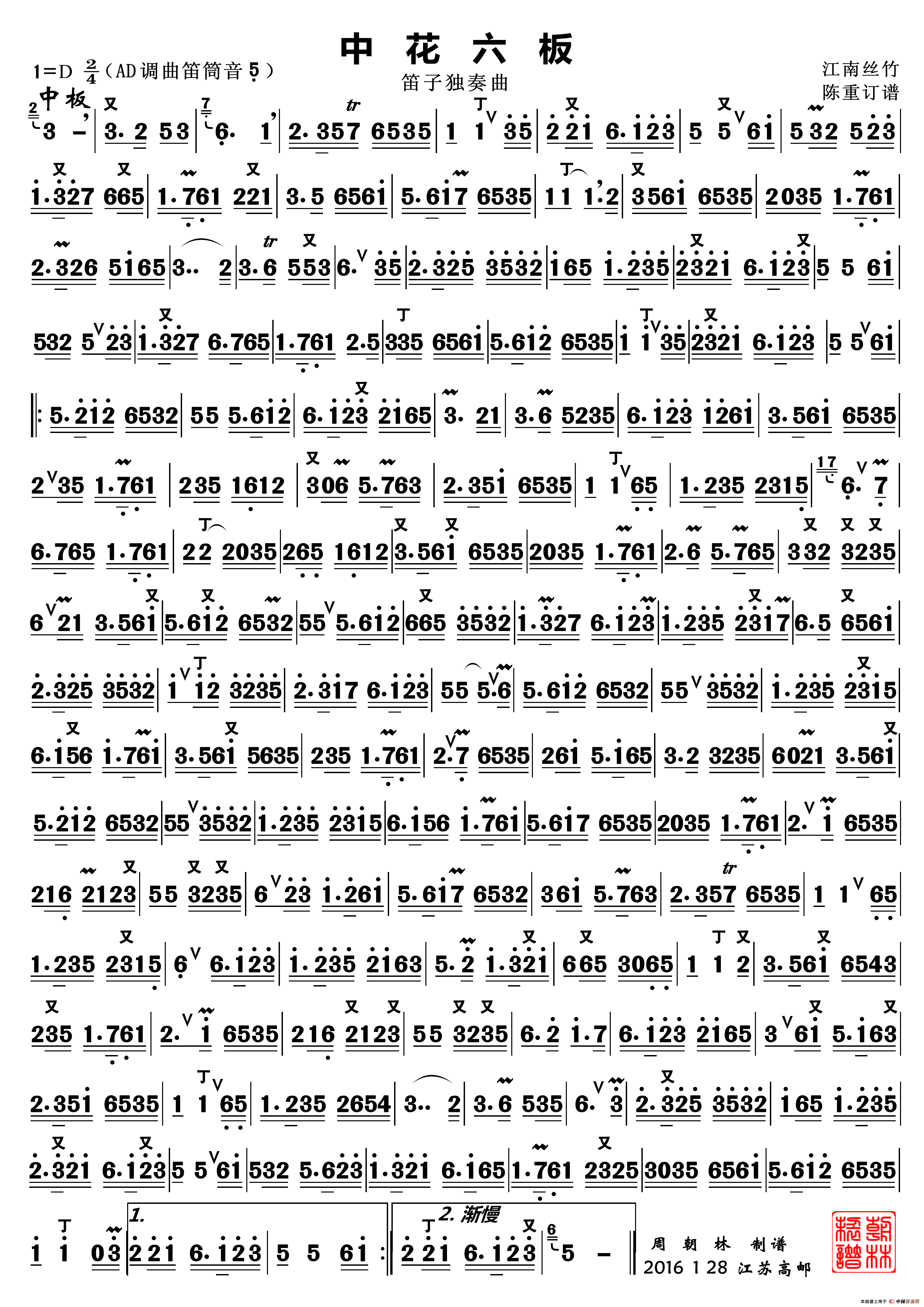 作曲:江南丝竹、陈重订谱 来源:周朝林制谱 上传:zhouchaolin