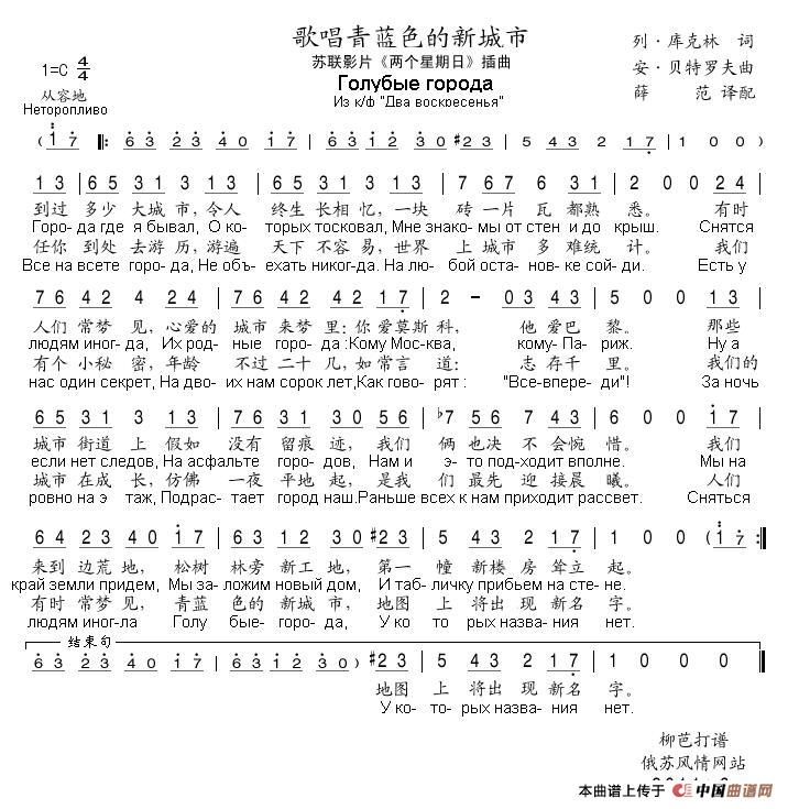 关于《[前苏联]歌唱青蓝色的新城市》曲谱的评论
