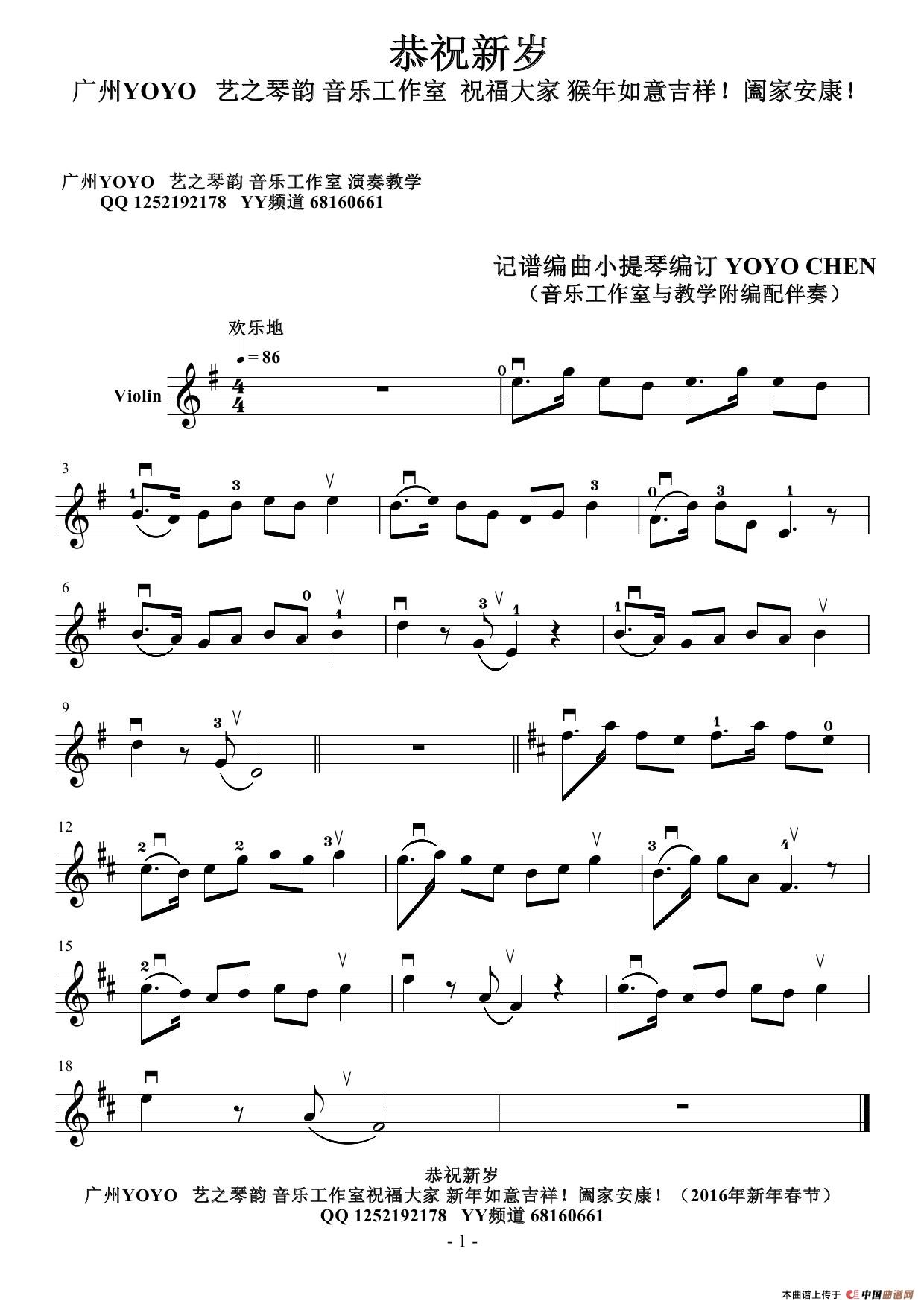 广州YOYO 艺之琴韵 音乐工作室向中国曲谱网的管理,全体老师与全国音乐爱好者拜年:祝福大家猴年万事如意!心想事成!阖家安康!