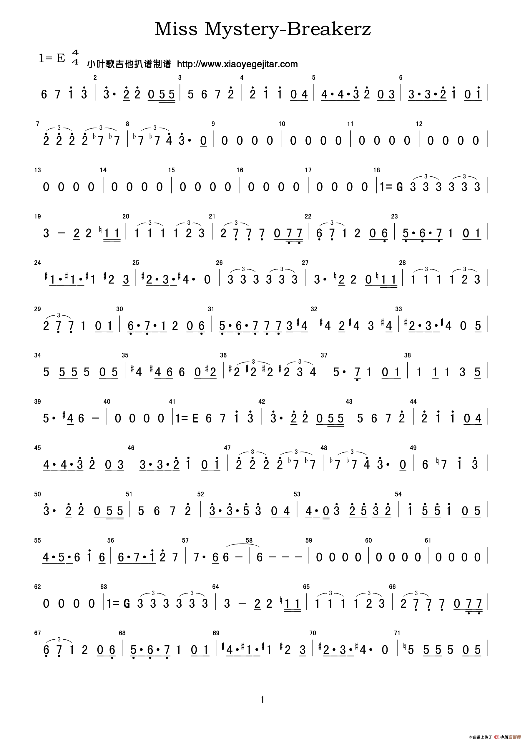 作词:Breakerz 作曲:Breakerz 演唱(奏):Breakerz 来源:小叶歌吉他扒谱制谱 上传:乐记简谱