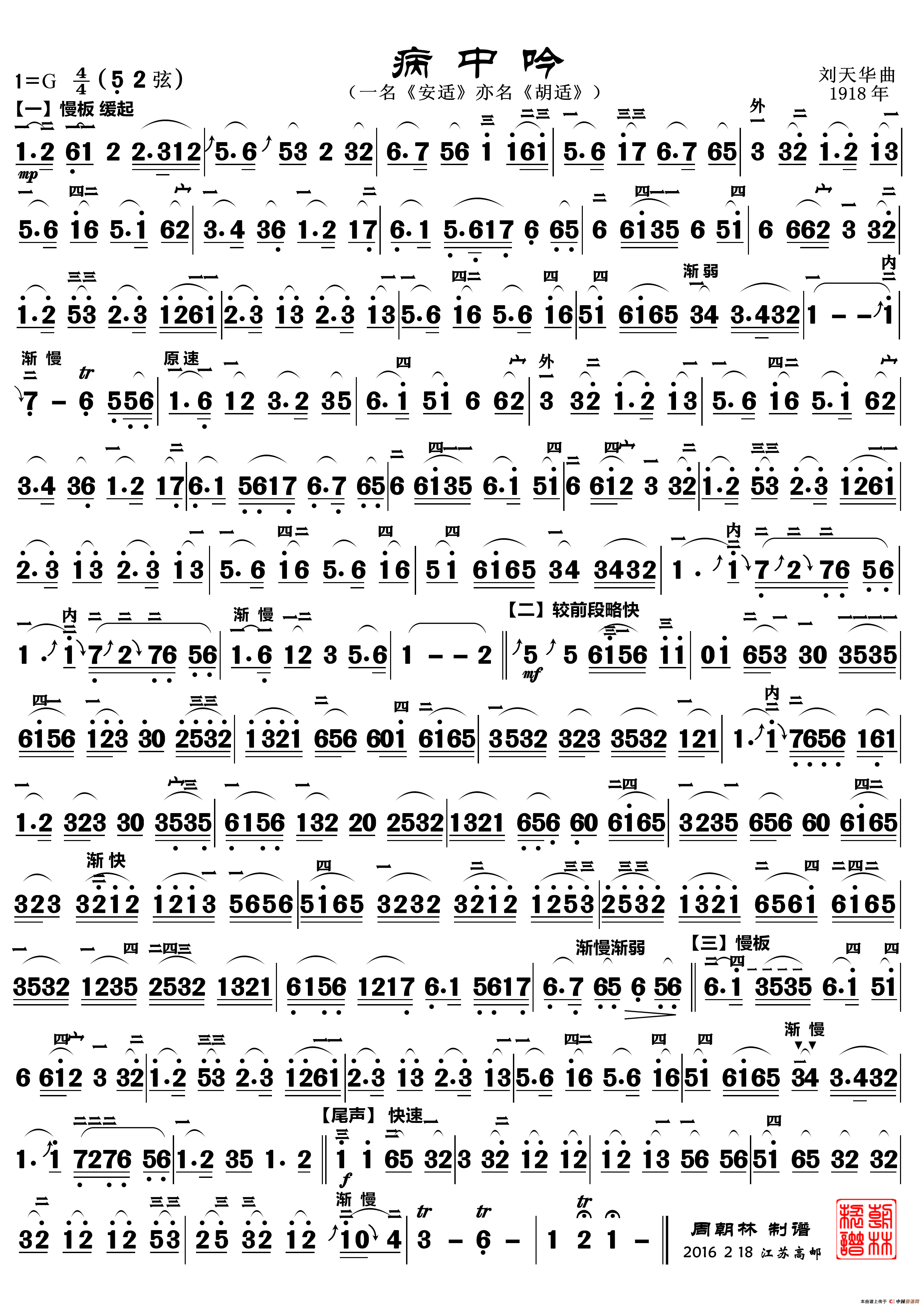 病中吟(二胡曲)