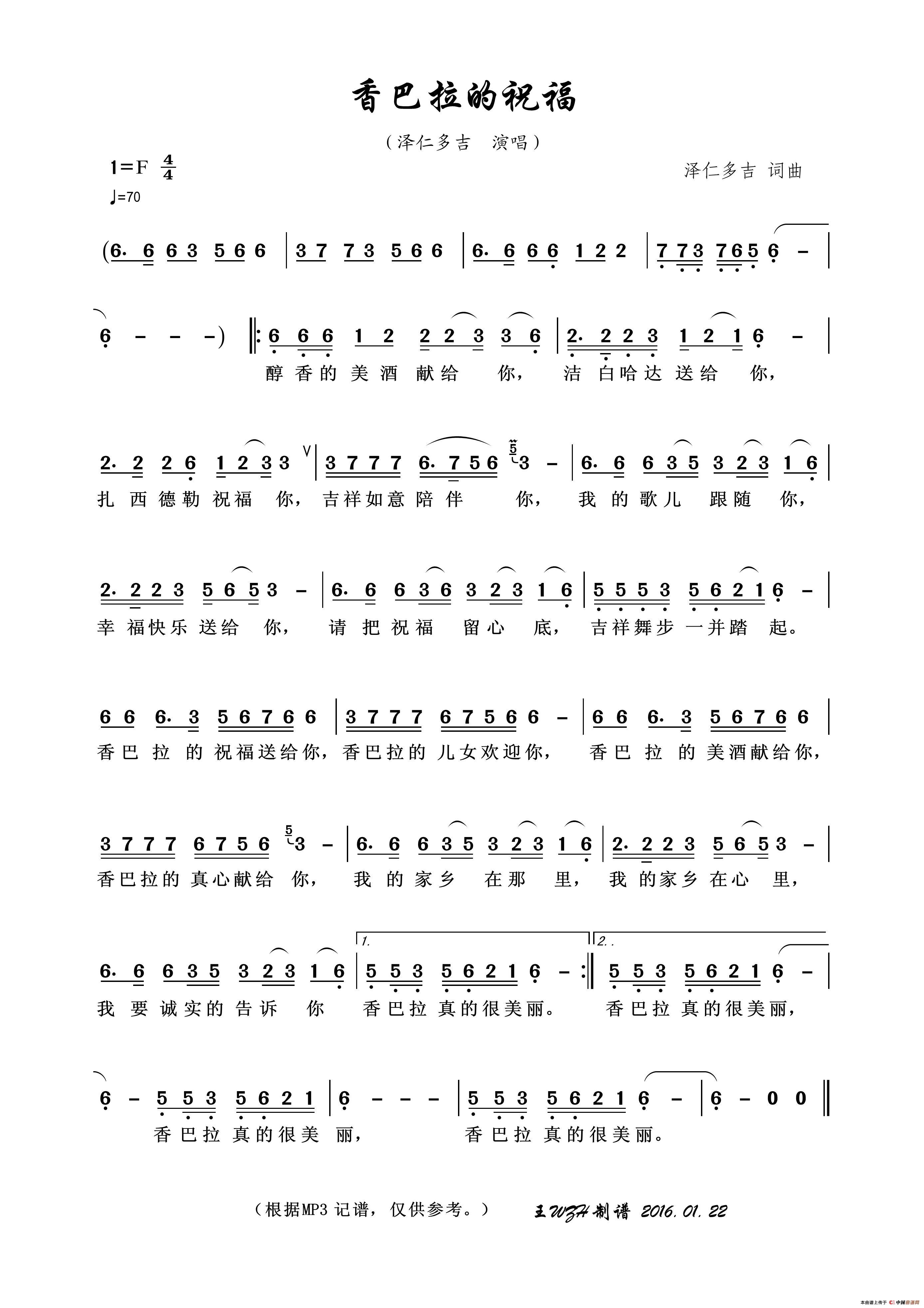关于《香巴拉的祝福》曲谱的评论