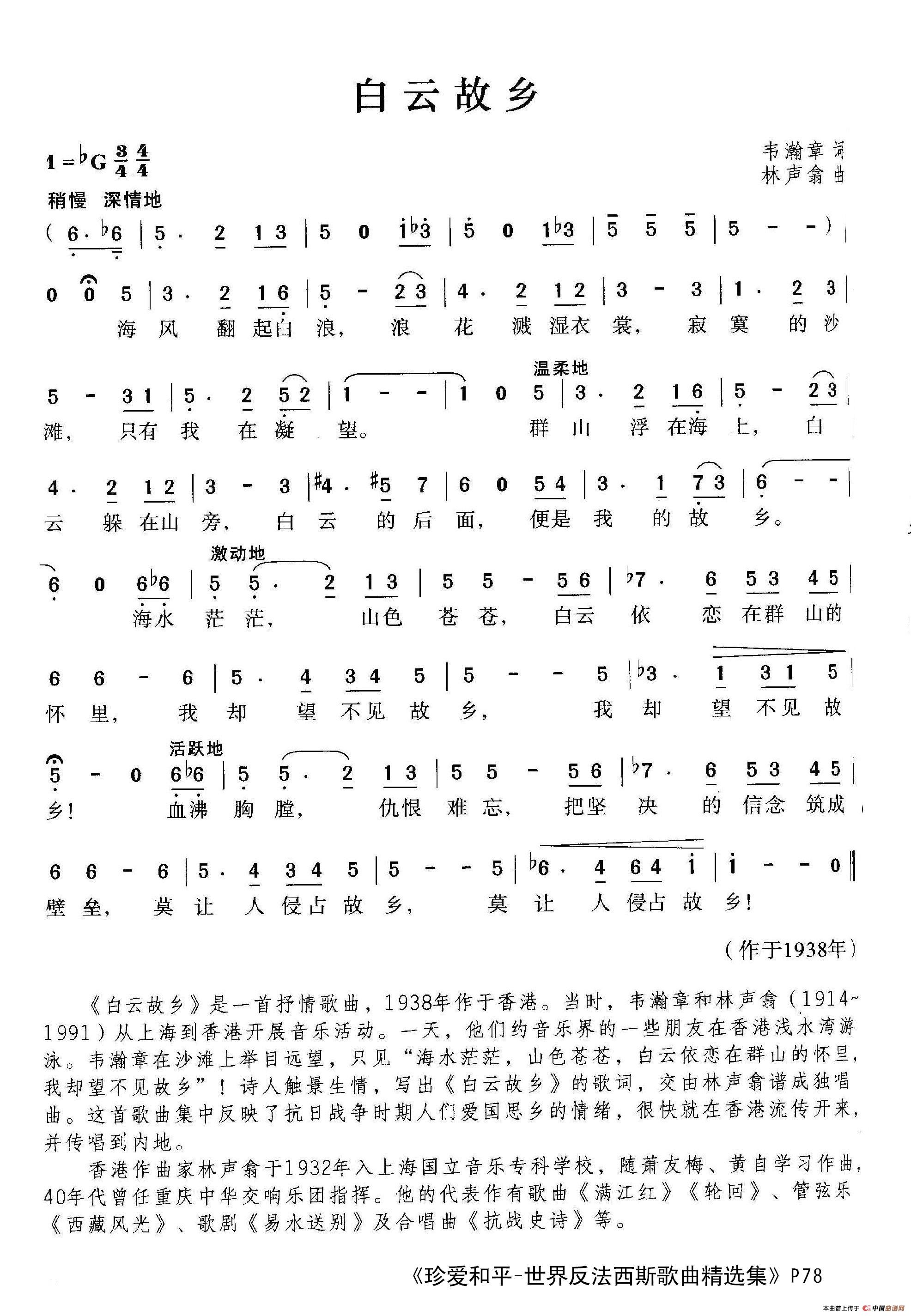 关于《白云故乡》曲谱的评论