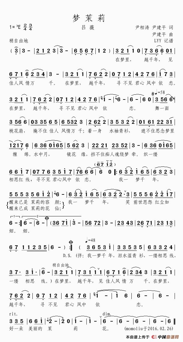梦茉莉(尹相涛 尹建平词 尹建平曲)