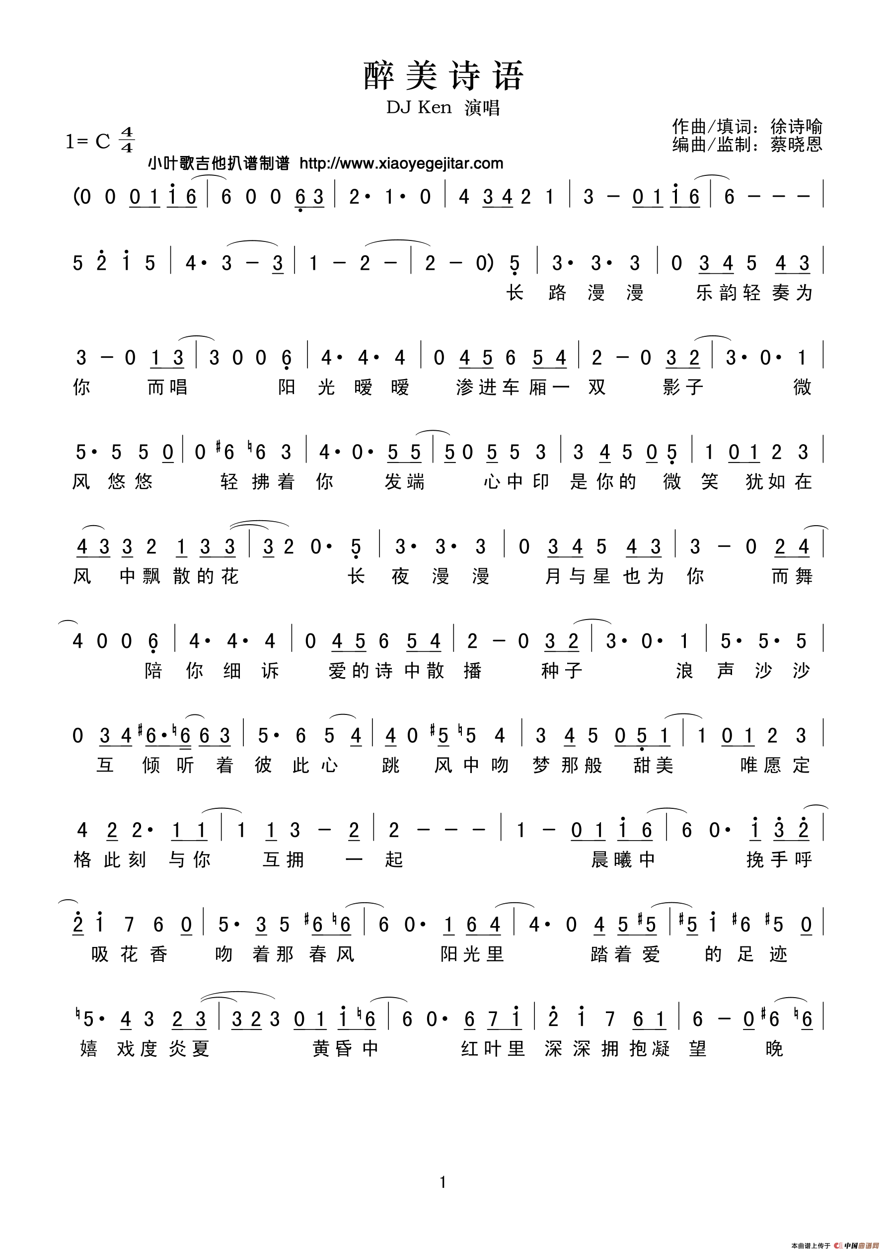作词:徐诗喻   作曲:蔡晓恩   演唱(奏):DJ Ken   来源:小叶歌吉他扒谱制谱   上传:乐记简谱   日期:2016-02-29   浏览次数: