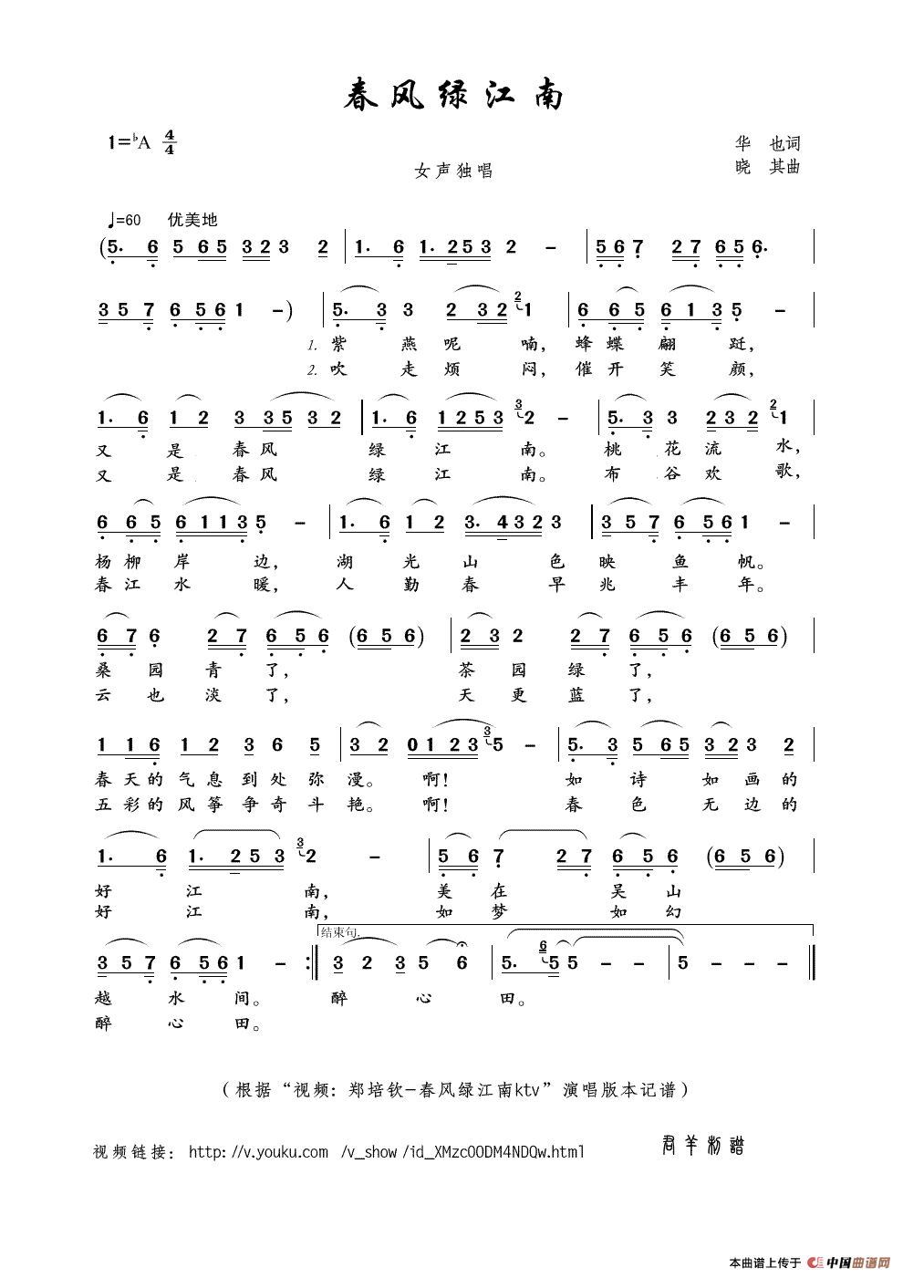 关于《春风绿江南》曲谱的评论