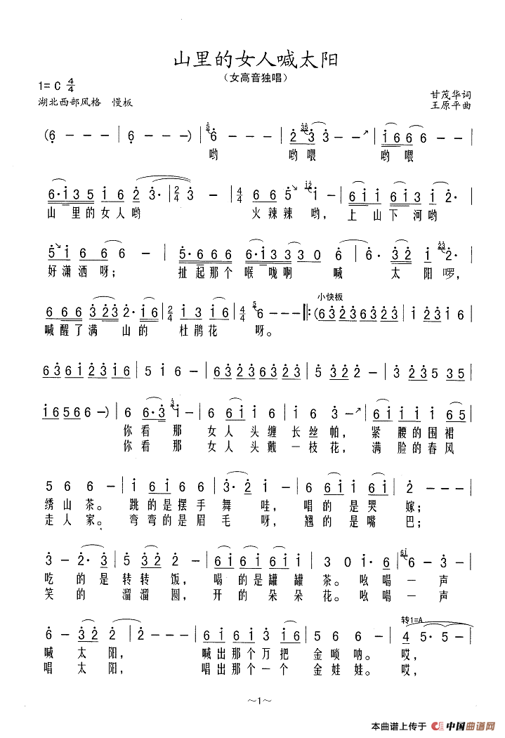 关于《山里的女人喊太阳》曲谱的评论