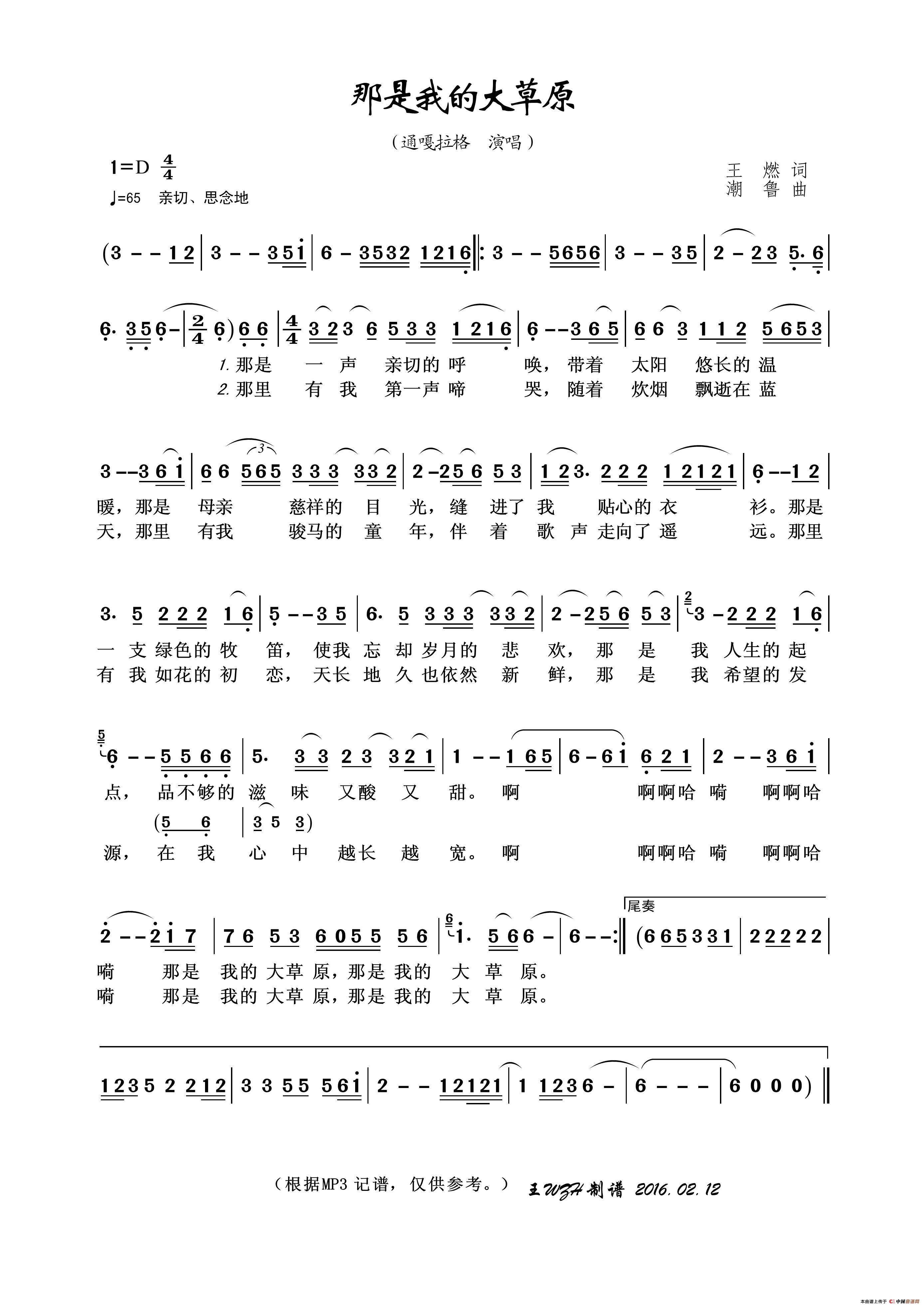 关于《那是我的大草原》曲谱的评论