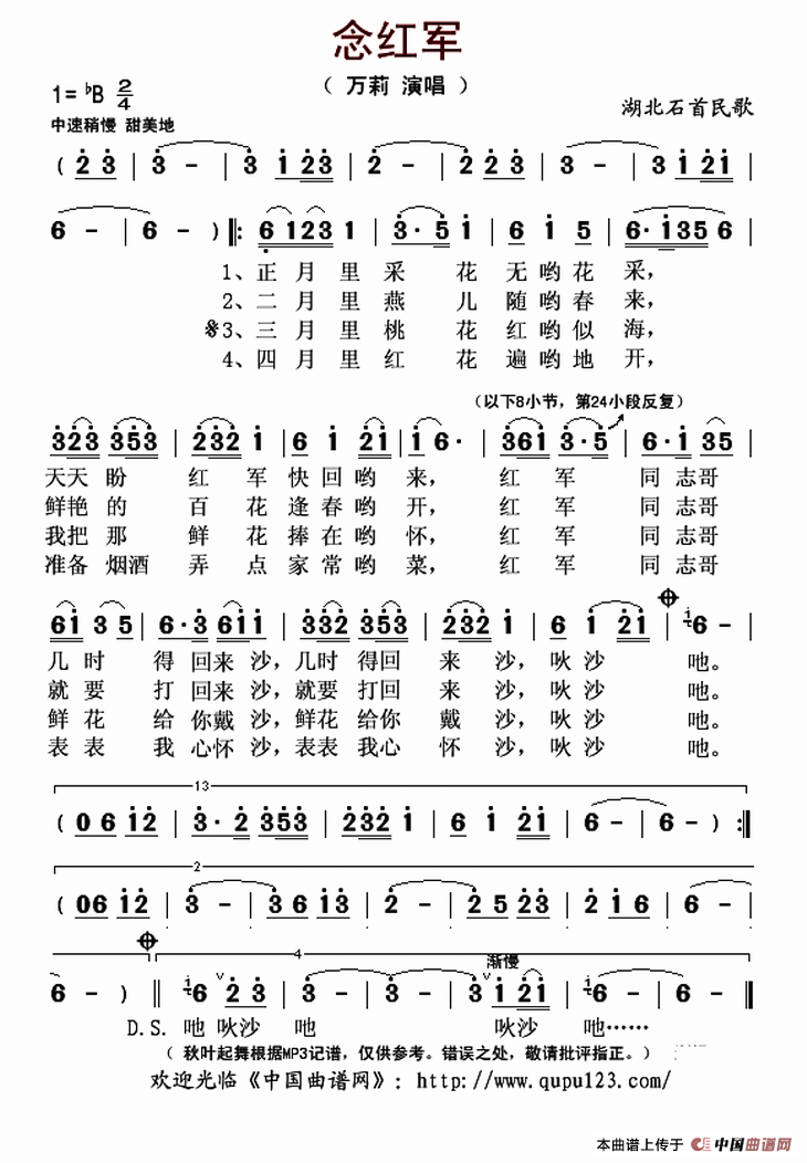 关于《念红军》曲谱的评论