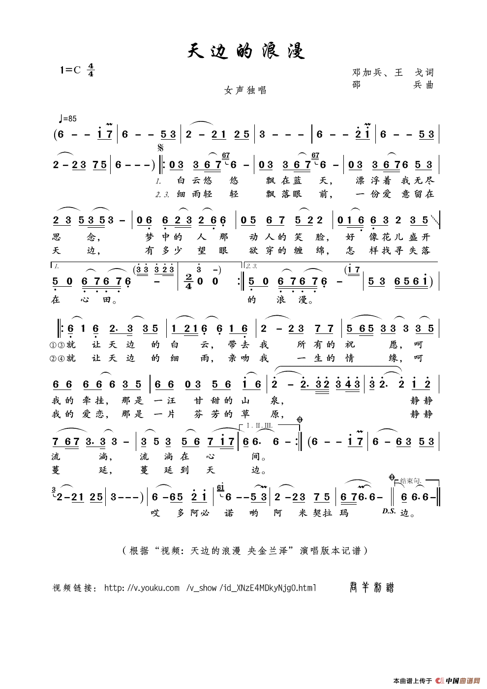 关于《天边的浪漫》曲谱的评论