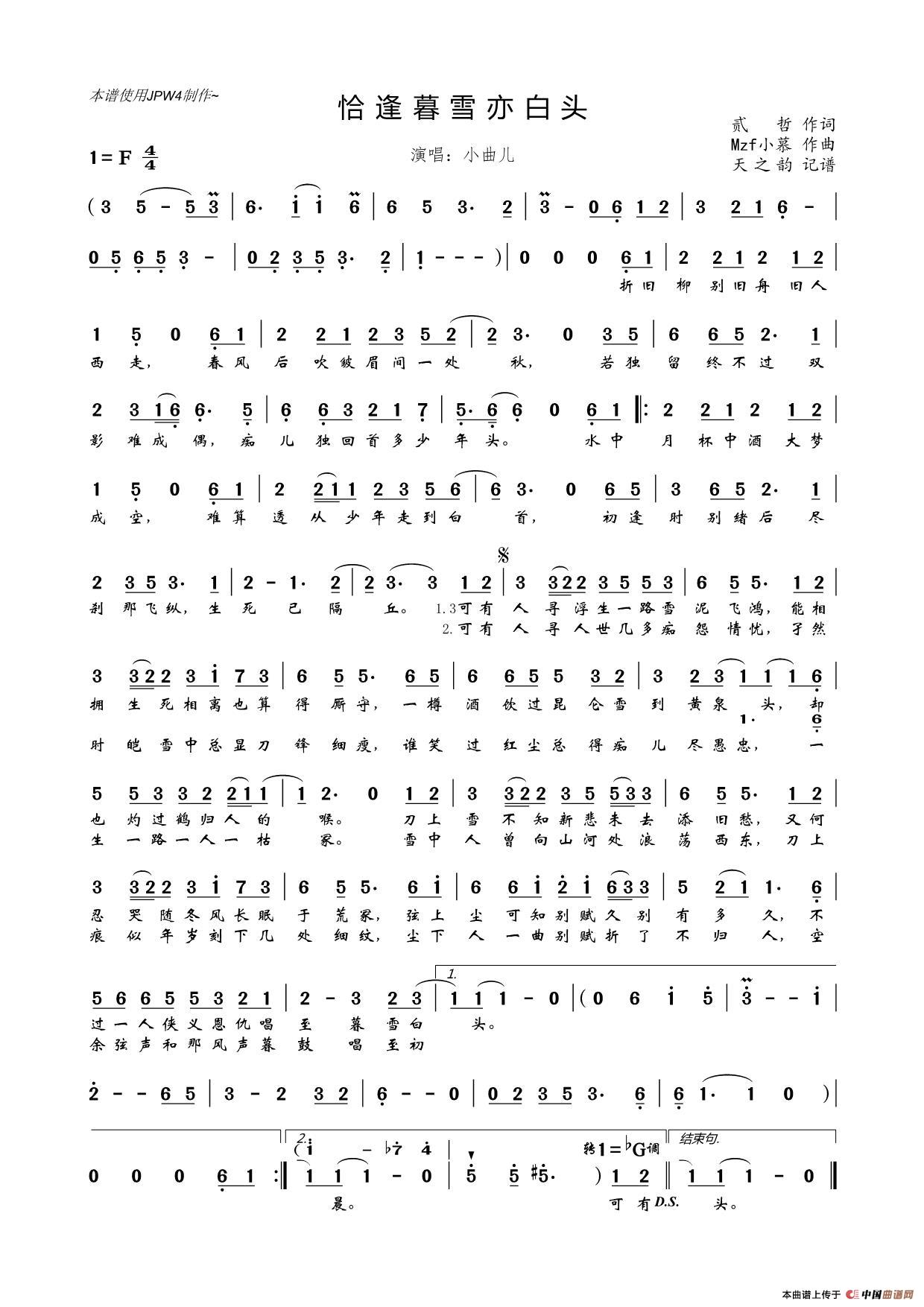 关于《恰逢暮雪亦白头》曲谱的评论