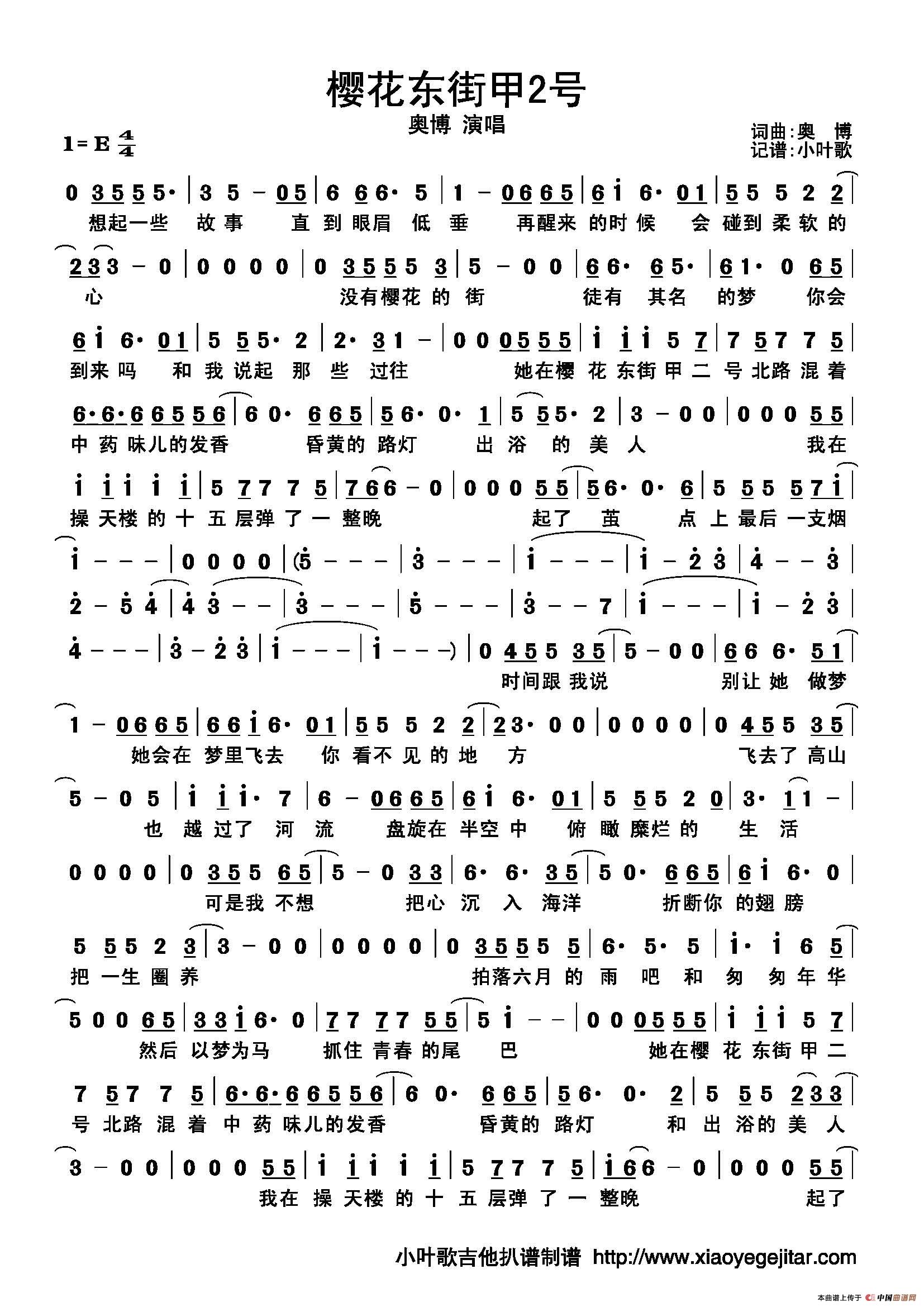 作词:奥博 作曲:奥博 演唱(奏):奥博 来源:小叶歌吉他扒谱制谱 上传:乐记简谱