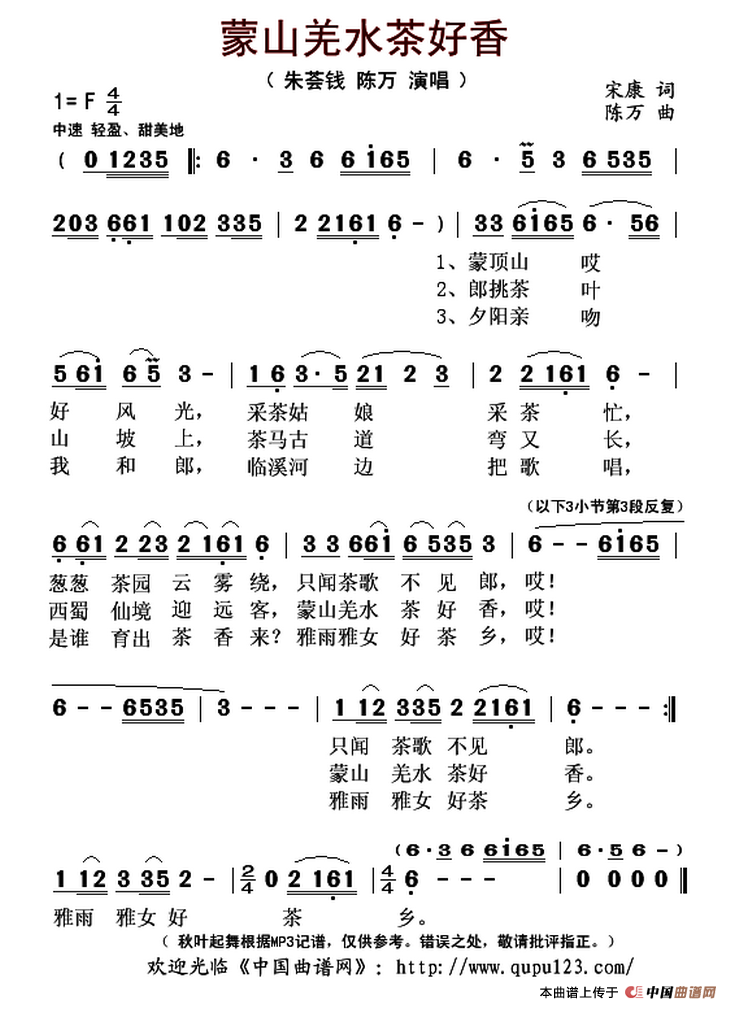 演唱:朱荟钱、陈万 作词:宋康 作曲:陈万