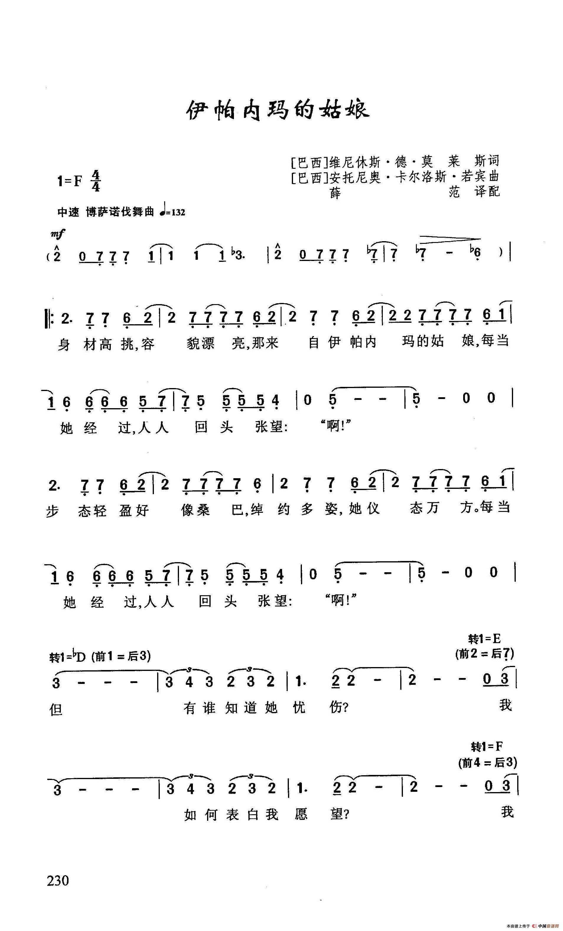 作词:[巴西]维尼休斯·德·莫莱斯 作曲:[巴西]安托尼奥·卡尔洛斯·若宾 来源:《薛范60年翻译歌曲选》 上传:瓦莲金娜
