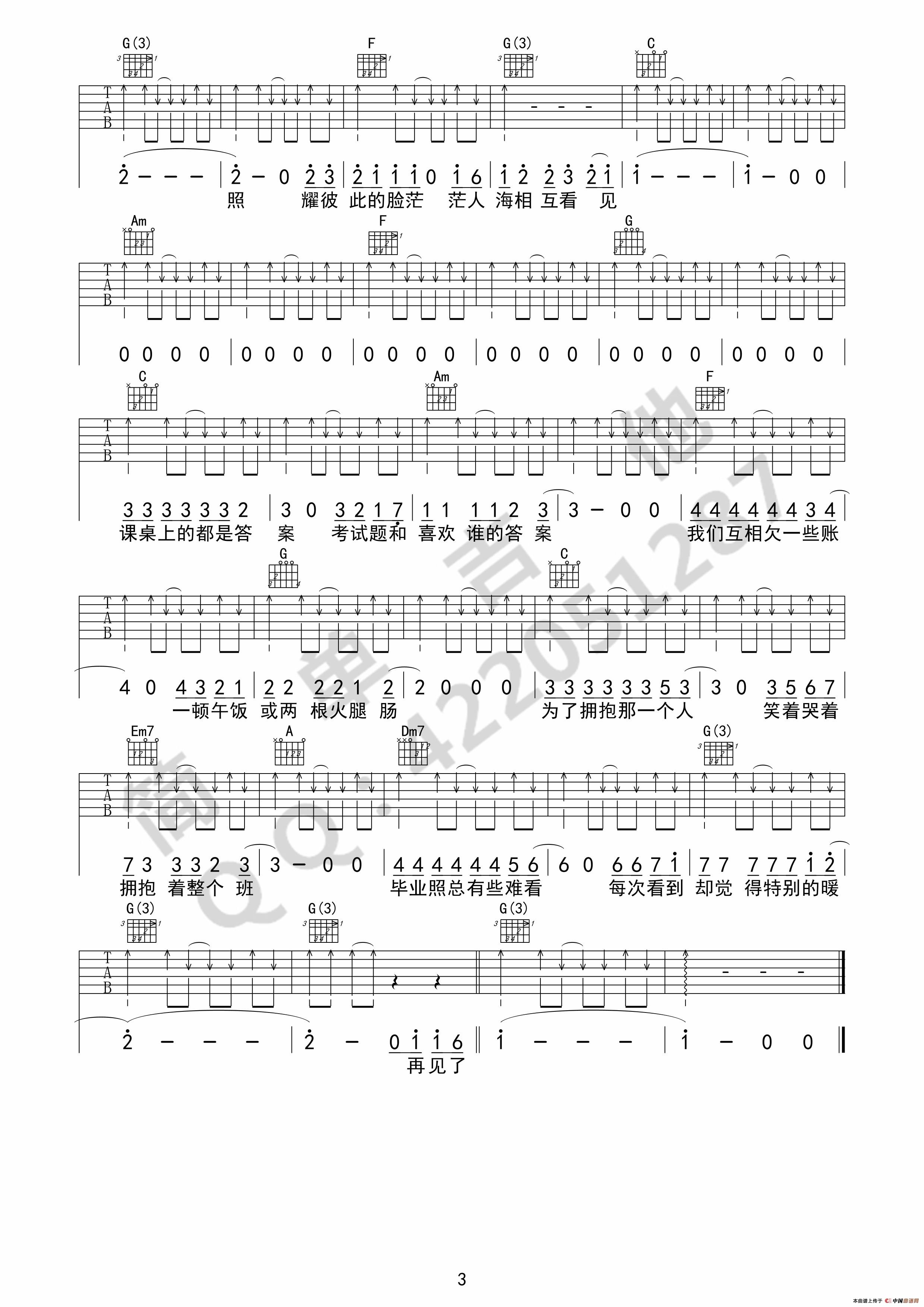 不说再见(吉他六线谱)