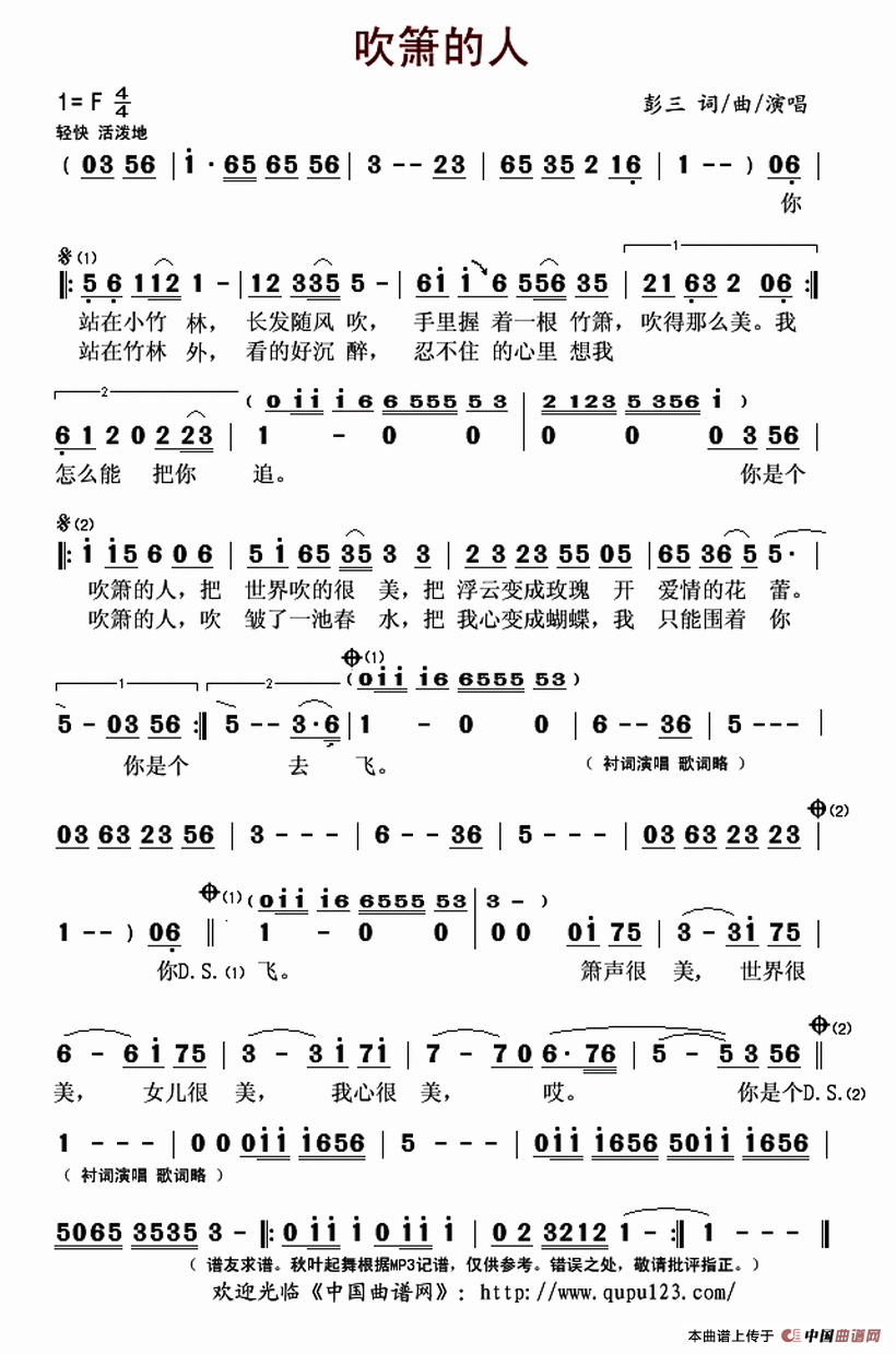 作词:彭三 作曲:彭三 演唱(奏):彭三 来源:秋叶起舞记谱上传 上传:秋叶起舞