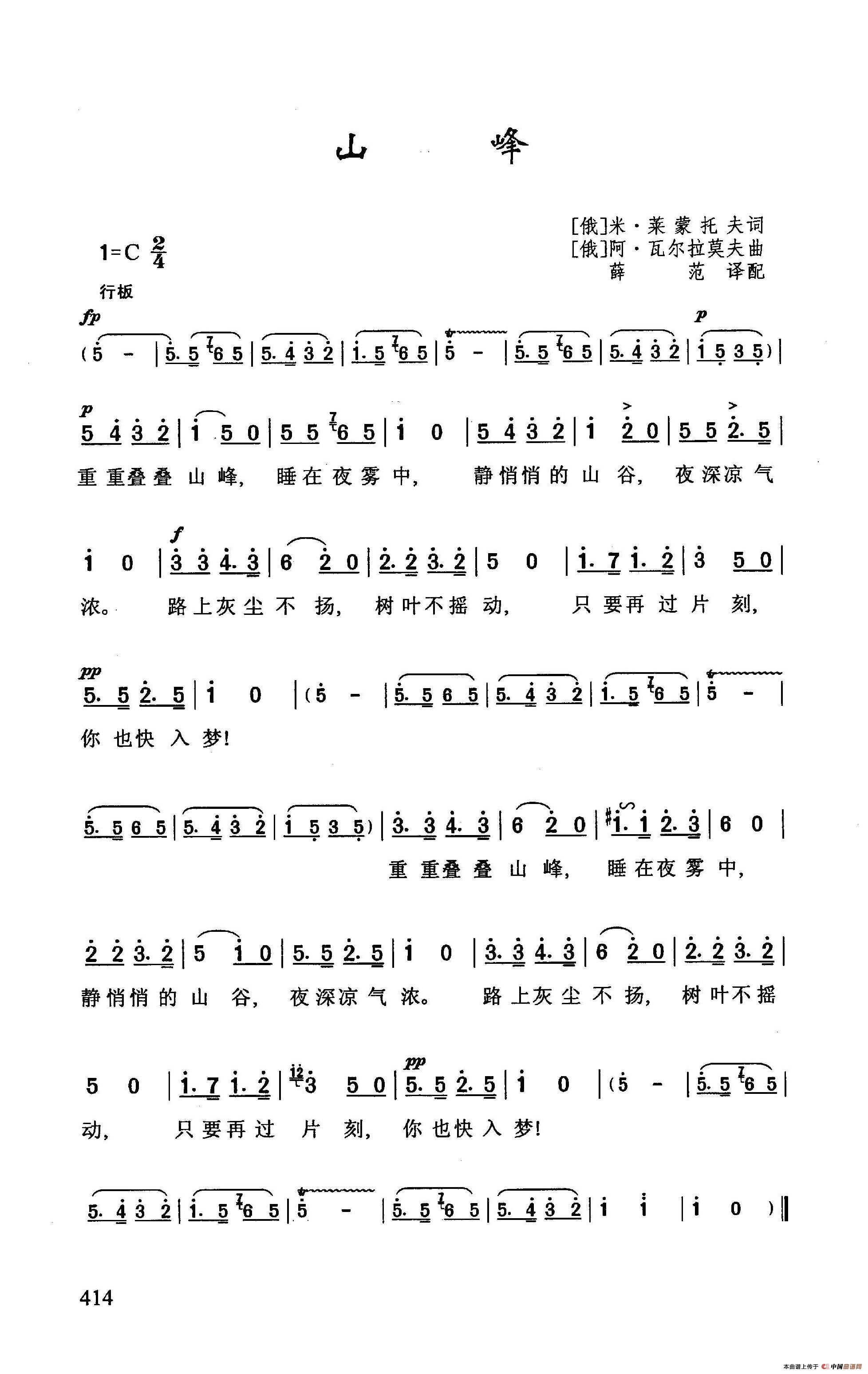 俄国大诗人莱蒙托夫(1814-1841)根据歌德的诗旨写了这首《山峰》。
